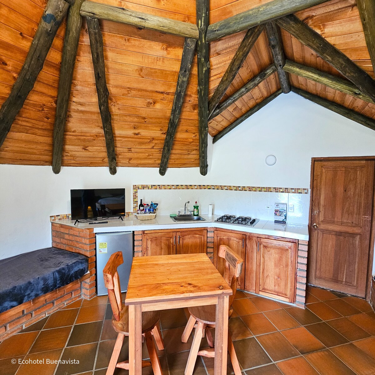 Located 15 minutes between the town of Villa de Leyva and Sutamarchán, the cabin is located on an agricultural estate where you will find what you and your family need to be together as a couple, family or friends. An ideal place that will give you peace and quiet and why not! To have fun with its various games, tourist places such as Villa de Leyva and Ráquira and others. You can bring a bicycle and a pet. We have biosecurity standards to avoid Covid-19.