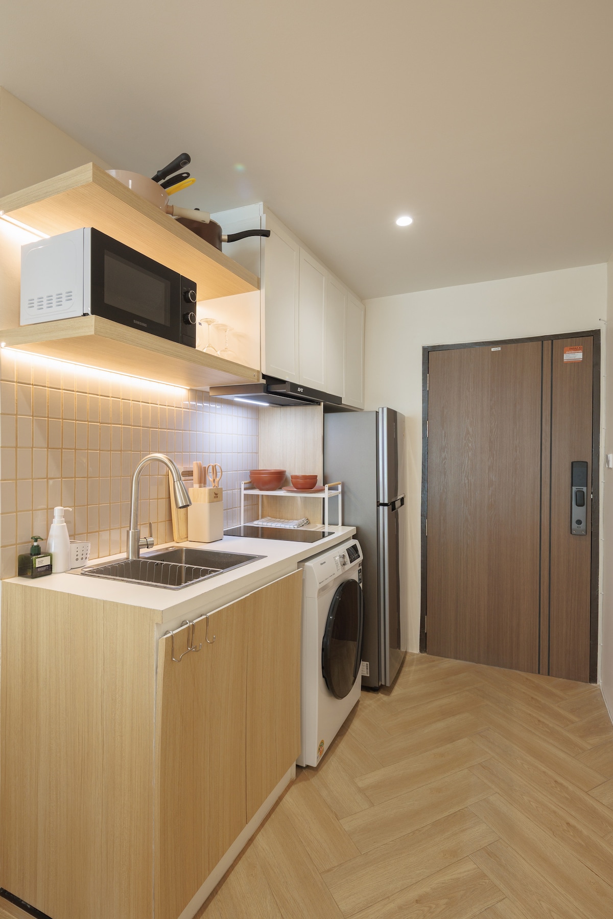 Soak up the modern charm of this nice decorated room. Fully furnished with all electric appliances that enhance the comfort of your stays ! The entire place will be yours [bedroom, bathroom,kitchen & living space] Soft&comfortable King size mattress & Muji bedsheet set. Free Wifi , 60" SmartTV + can watch your own Netflix, Air purifier, washing machine with drying function , iron , microwave oven , fridge, Electric hob & cooking utensils. Bathroom with rain shower & hot water machine.