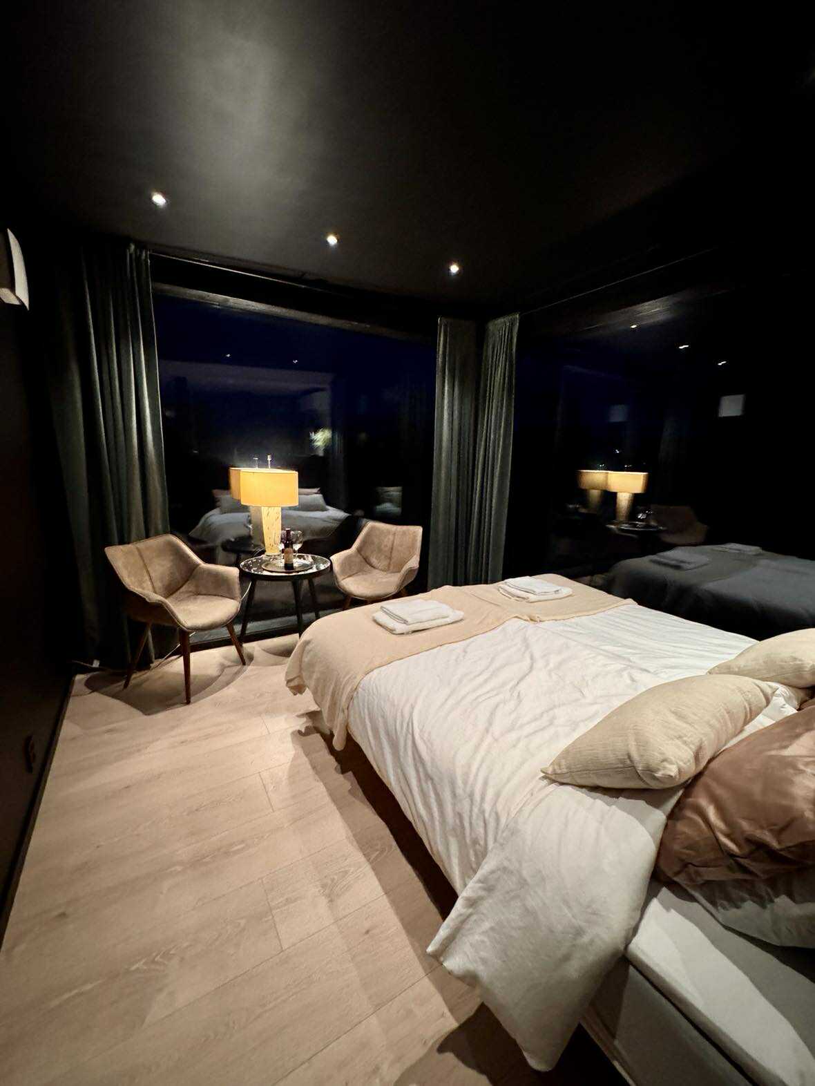 Large apartment with 2 bedrooms and 2 double beds. The apartment is well suited for families, large groups, tourists and single guests. TV with TV channels, internet and possibility for parking. The apartment is located in the heart of Kirkenes and has a fantastic view of the city, the sea and the harbor terminal. Perfect for watching the Hurtigruten dock. The nearest store, the harbor terminal and the city center are a 15-minute walk from the apartment. The Barentsbadet with hot tub and sauna is just a few steps away.
