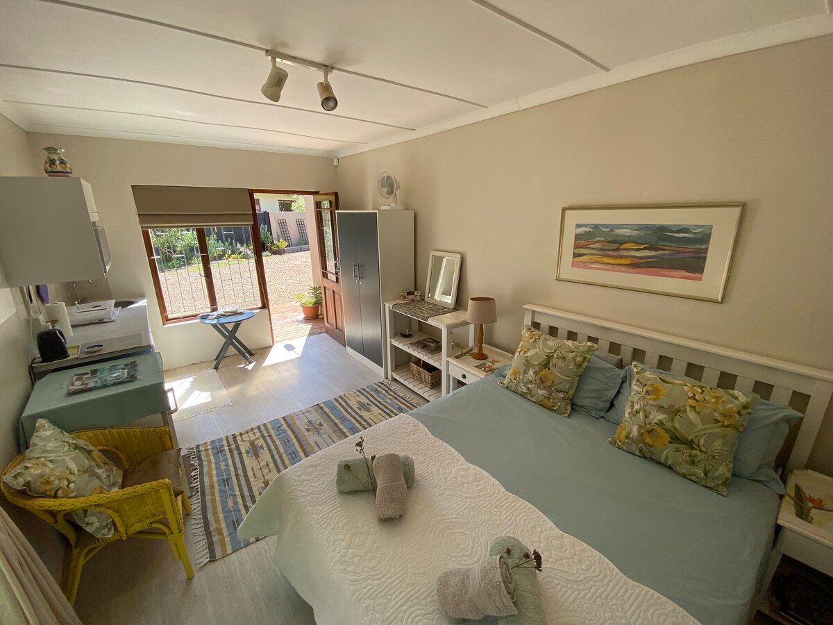 Find a lovely tranquil quiet private garden cottage under an old yellowwood tree. We are visited by a variety of bird sounds and early morning chicken crowing to remind you of country living at it's best We would love to offer you a guided bird tour or mountain walks to the Marloth waterfall or Bontebok Park game drive on the breathtaking Breede River banks. Swellendam is a beautiful town, of which we are proud. Hope you will book and enjoy your stay with us.
