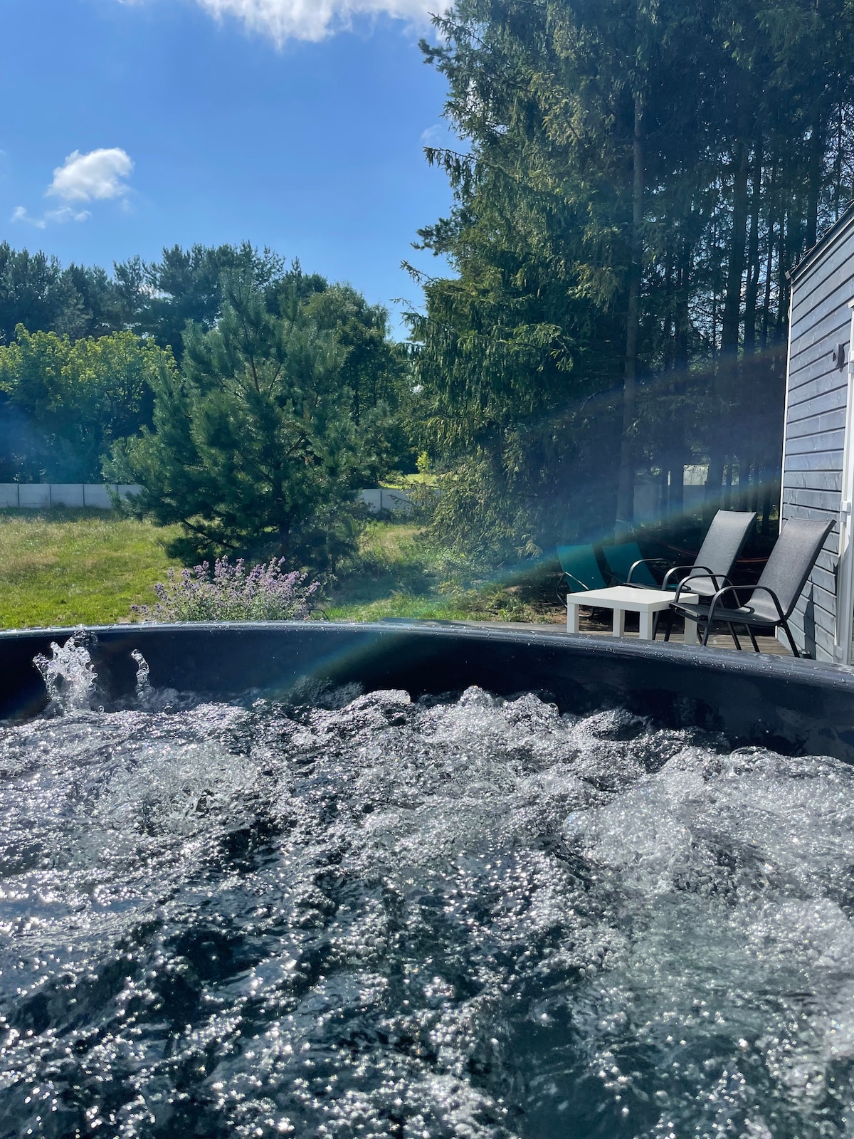 Simple little things can be enjoyable. Just stop by for a while with us! For rent is a modern Brda type house with an external jacuzzi and a large bathroom with a double bathtub. The cottage is located on the Wierzchuciński Trail of the Four Lakes. The main recreational beach is about 100-150 m away. The property is located on a hill, without neighboring buildings (there is 1 more house for rent on the premises). The house is fully equipped. There is a fire pit available for guests (wood is included). We provide 2 bicycles on request.