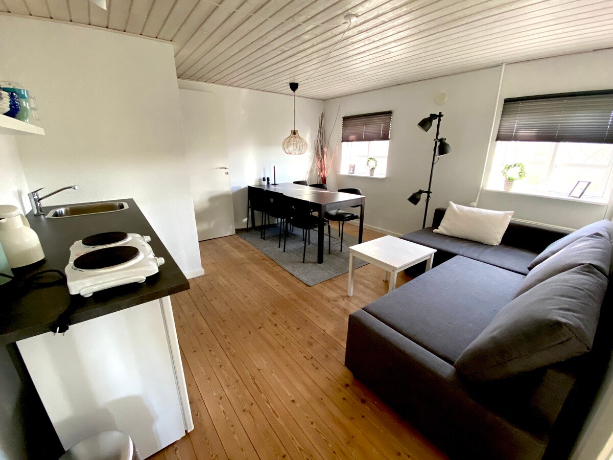 At the entrance to Mols Bjerge in the small cozy town of Agri, you can have a base while exploring the wonderful nature of the National Park. The apartment is an extension of our own part of the house and is 50 m2. There can be up to 4 guests (possibly more if they are children). Here are fantastic views and a private terrace where there is room to relax after the day's activities. Note: the terrace and courtyard are not fenced.
