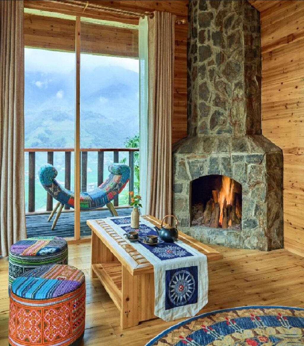 -Located in Muong Hoa Valley, only 10 minutes drive from Sapa town. - It is quiet, peaceful and overlooked the serene paddy fields and villages. - This room provides an indoor fireplace and bathtub. - Daily breakfast provided. - Free access to Gyms and Infinity pool. - Herbal massages and trekking tours arrangements.