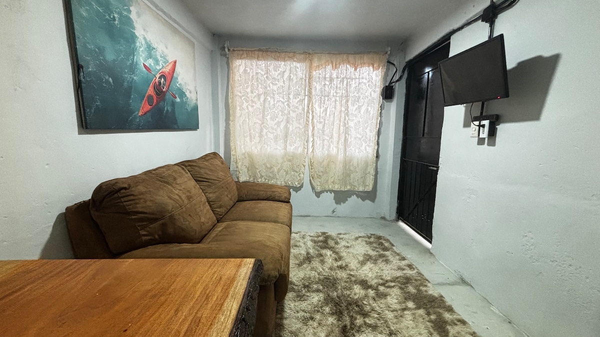 Apartamento nuevo y cómodo a 13 minutos del aeropuerto. Y a 10 minutos del centro de Villahermosa, 10 minutos de Galerias Tabasco 2000. Está ubicado a un minuto de restaurante de mariscos sobre el malecón de villahermosa. A 3 minutos caminando se encuentra un súper mercado donde podrás hacer tus compras. El departamento es completo, cuenta con: -Internet -Cocina completa -Comedor -2 Sofá camas -Sala y Habitación climatizada -2 camas matrimoniales -TV Smart con Netflix -2 baños