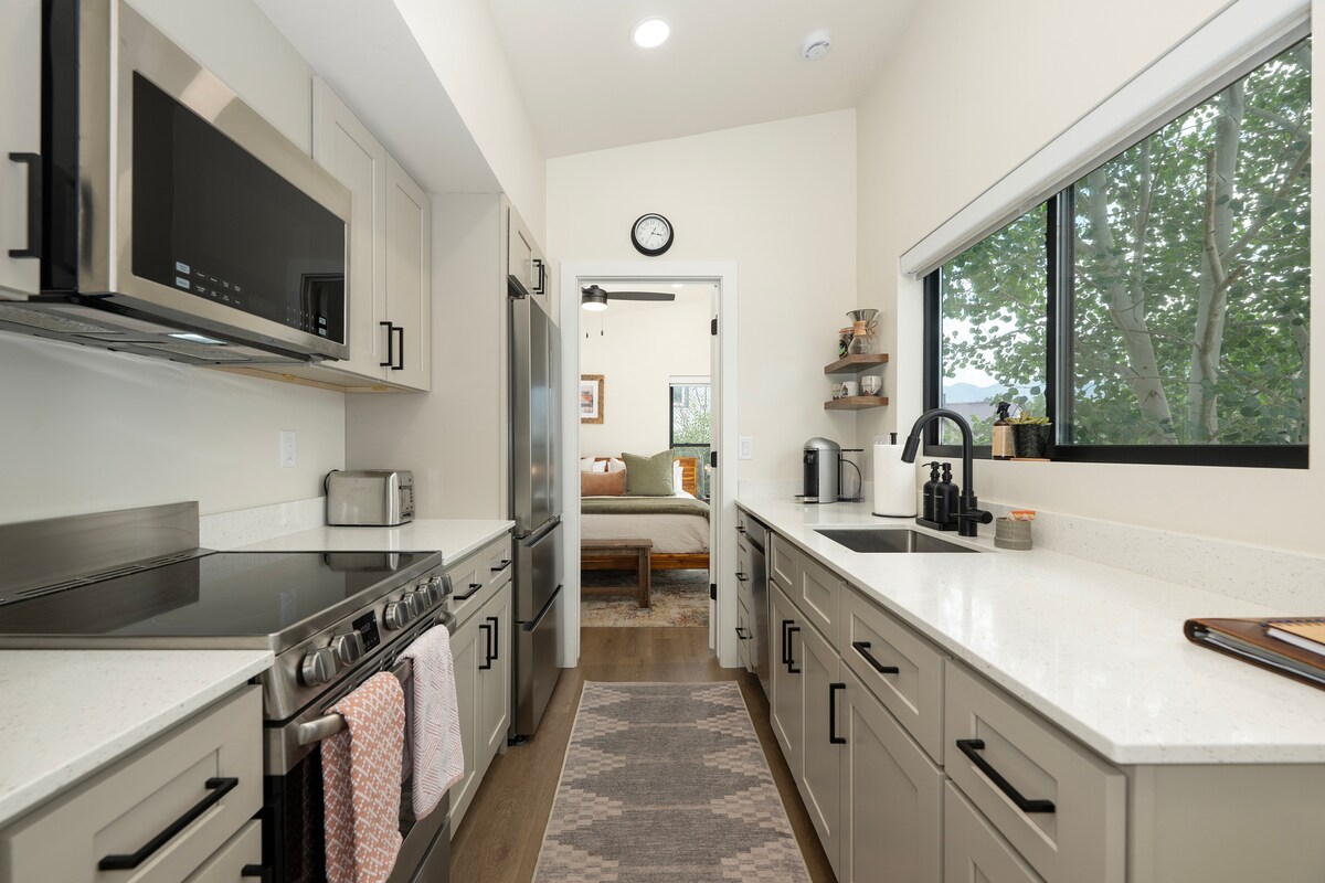 Enjoy a sanctuary in the heart of charming downtown Fraser—complete with a private outdoor sauna! Tucked among aspens yet just steps from the Fraser train/bus station, this modern home offers a rare blend of seclusion, convenience, and character (the train rumbles by across the street). Leave your car at home and enjoy restaurants, bars, coffee, grocery, and frequent transit to Winter Park all within an easy walk. Stocked with everything you need to feel at home, it’s the perfect basecamp.