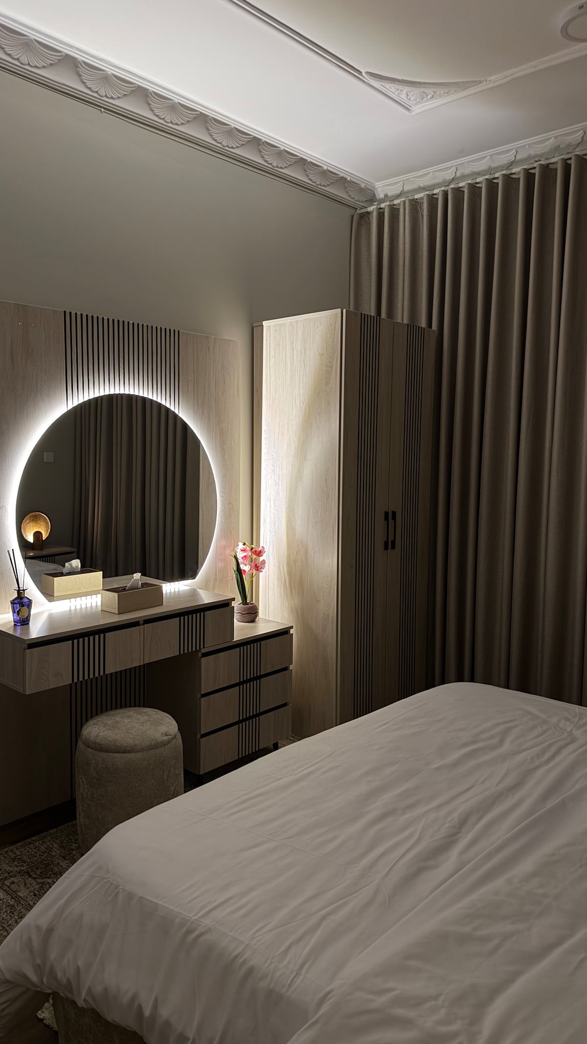 Family apartment with modern décor perfect for a comfortable and quiet stay • Spacious and comfortable king size bed. • Elegant lounge with practical seating. • Modern bathroom with luxurious finishes. • Distinctive air conditioning and lighting for greater comfort. 🌟 Perfect choice for visitors looking for comfort whether for business or leisure