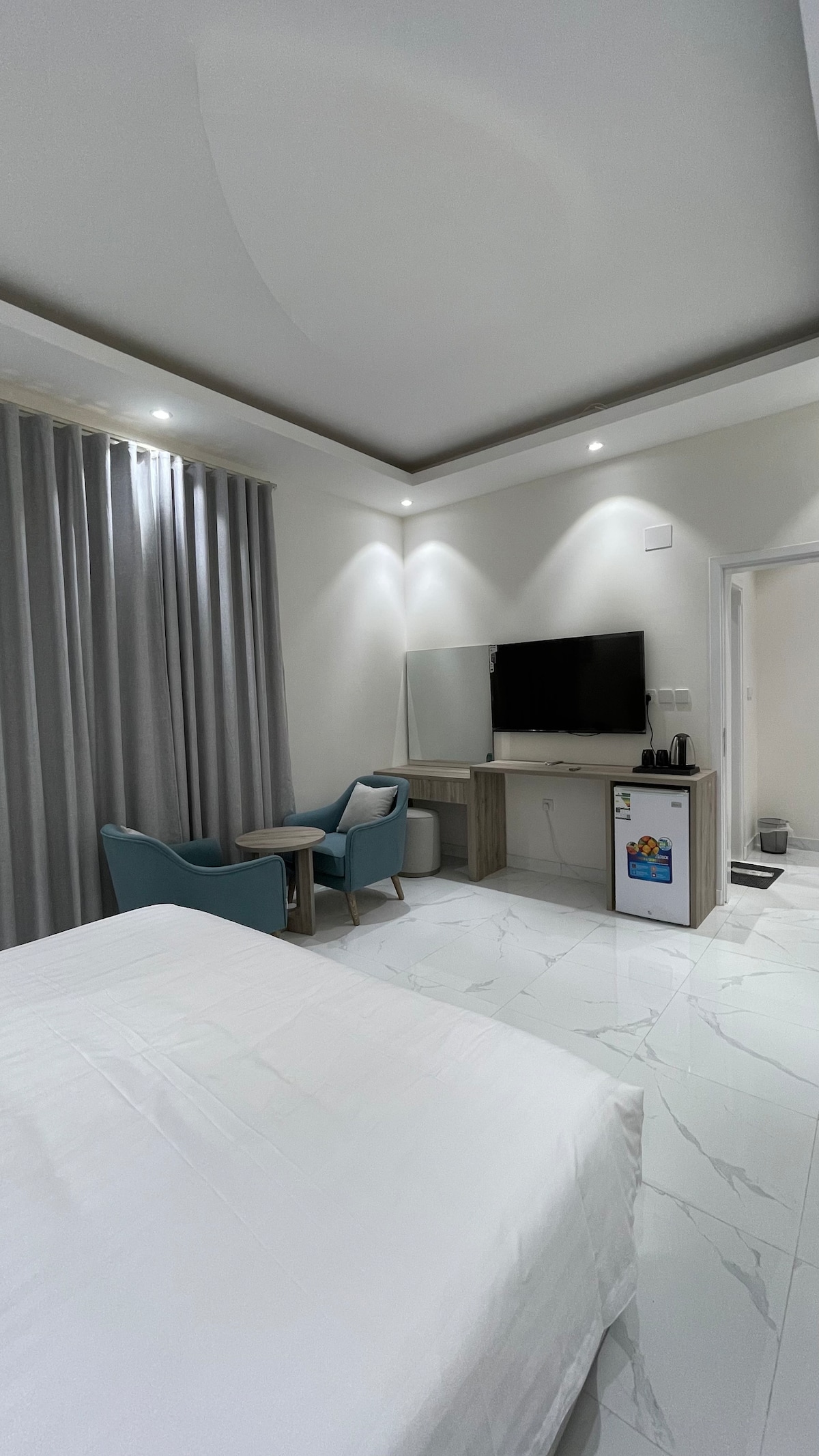 شقة عائلية بديكور عصري مثالية لإقامة مريحة وهادئة • سرير كنغ واسع ومريح. • صالة أنيقة بجلسة عملية. • حمام حديث بتشطيبات فاخرة. • تكييف وإضاءة مميزة لراحة أكبر. 🌟 خيار مثالي للزوار الباحثين عن الراحة سواء للعمل أو الاستجمام