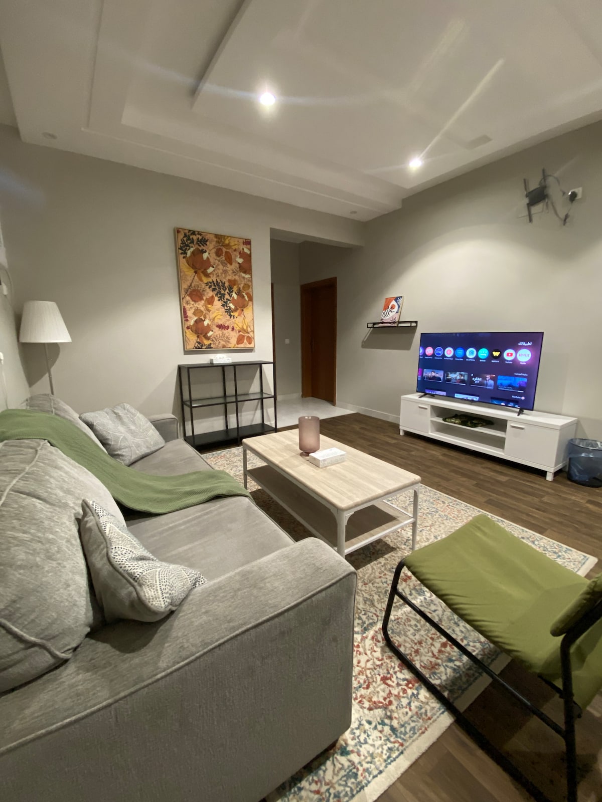 استرخ في هذا المسكن الفريد والهادئ ، ستديو بغرفة نوم خاصه يسع لشخصين . يتوفر فيه جميع المسلتزمات المتعلقه بالسكن من : - مطبخ خدمه صغير يتكون من ( مايكرويف ، غلاية ماء ، آلة قهوة لتحتسي قهوة هادئ ) - غرفة نوم بسرير كينغ مع خزنة ملابس ، ايضا تلفزيون ذكي بشاشة مسطحه مع اريكه دائره مصممه بشكل عصريه . - حمام مخدوم بجميع الأدوات اللازمه . يتسع المكان الى شخصين . يمتاز المكان بوجوده في منطقة حيه على شارع تجاري وقريب جدا من الكافيهات والمطاعم وايضا المطار .
