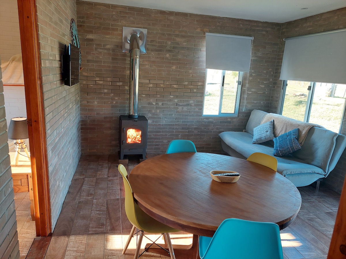 This cabin is located on a 35-hectare property with water mirrors and abundant vegetation. Those who stay can enjoy all the property and the delicious food that Leti cooks in their "La Pitanguera". This one Ambient has a sofa bed and a box spring. It's ideal for those looking for a quiet place where they can enjoy various activities such as walks, campfires, and more. Located just a few kilometers from the city, guests can easily access it.