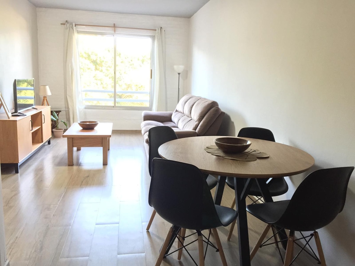 Enjoy an unforgettable stay in this spacious and comfortable apartment, located in the heart of Tacuarembó. With direct views of the Plaza 19 de Abril, you can explore everything on foot: restaurants, shops, supermarkets and more. Just steps away, you will find the newly inaugurated Teatro Escayola, the cultural center of the city. Tastefully decorated, this home for 2 people offers you comfort and an authentic experience in the center of Tacuaremboense life.
