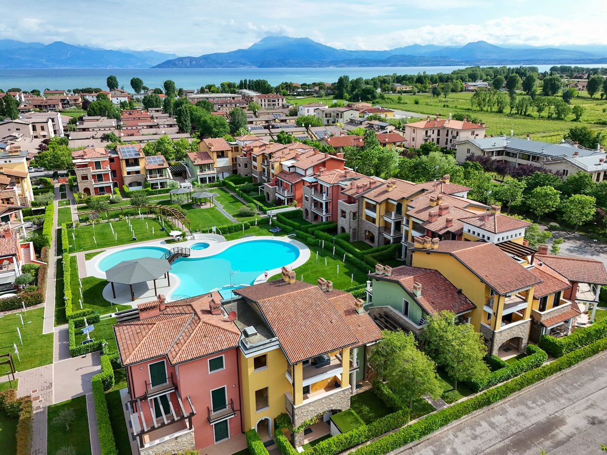 Garda Tranquil Escape - perfect place for autumn and winter holidays, a cozy retreat just a 10-minute walk from Lake Garda, lovingly created by us! Discover this charming apartment in a condo with a swimming pool and private gardens. It’s conveniently located close to Lake Garda, a children’s playground, and a supermarket. You’ll have easy access to the historical centers of Desenzano and Sirmione (12’ by car). Enjoy free parking (indoor and outdoor), with bus stops just 5’ away