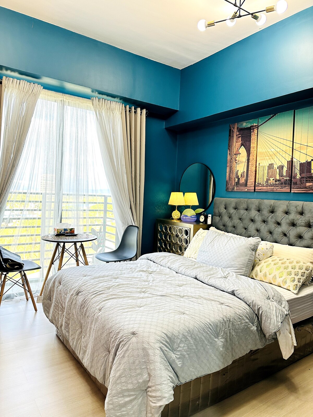 Stay in the center of the action in this one-of-a-kind place. Near to everything that you need. A very nice place to stay, hangout or just chill. * Aircondition * 65-inch TV * Soundbar Speakers w/ Subwoofer * WiFi * Air Purifier * Bed Size Double 54x75 * Pull-out Bed size twin KITCHEN * LG Refrigerator 7cuft. * Induction Cooker * Microwave Oven * Electric Kettle Pots & Pans * Kitchenwares & Utensils * Dinnerware BATHROOM * Single Point Water Heater * Fully Automatic Washing Machine