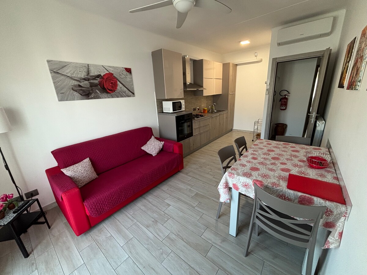 The apartment is bright and cozy, with an extensive and unmissable view of the sea and the port. A PRIVATE PARKING SPACE is included under the house, as well as a storage room for those who have their own bikes on the first floor. The accommodation is in a quiet location. A few minutes' walk from the bike path, bike rental, the Mediterranee swimming pool, Portosole, and Villa Ormond Park. In 5 minutes by car you can reach the beaches and the beautiful Tre Ponti, the city center and the Ariston. It is equipped with Wi-Fi and air conditioning