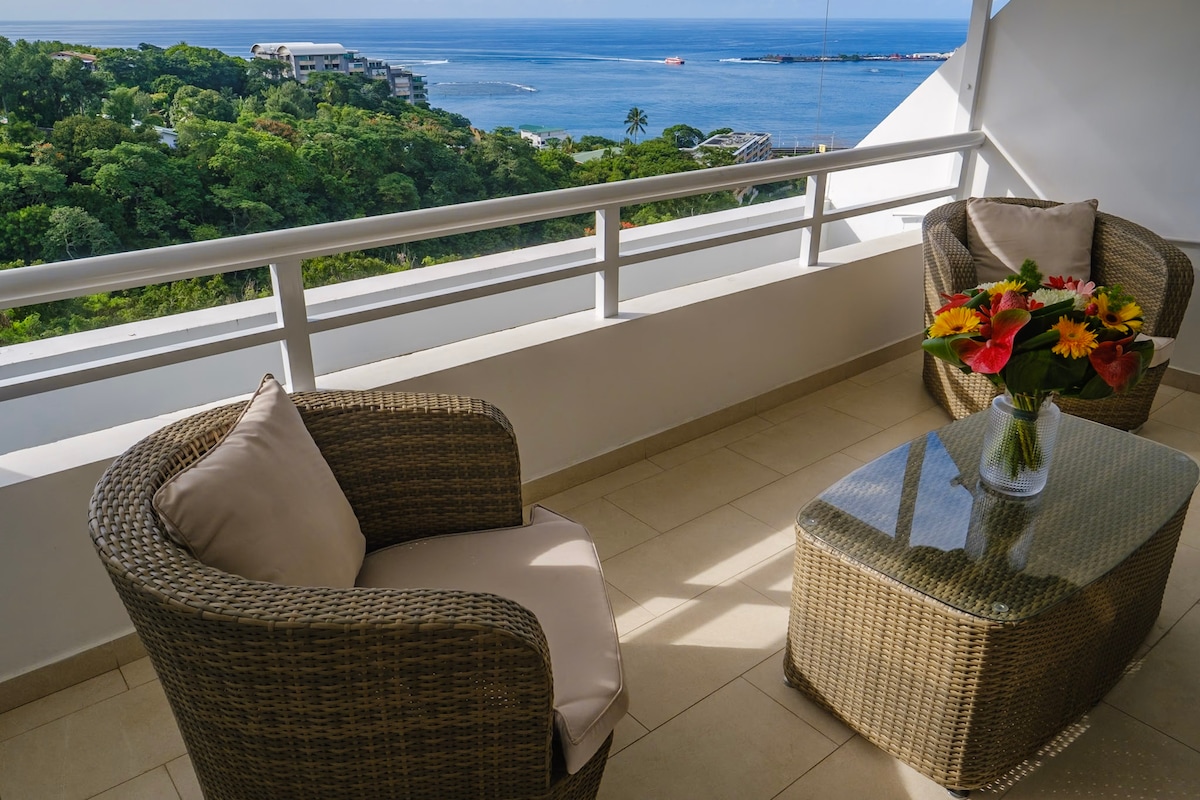 Relax in this cozy studio with views of Moorea Renovated studio in a seaside style, conveniently located 5 minutes from the airport and high up overlooking the sister island. 🏝 Why choose our studio? Calm & comfort – A warm cocoon. Nearby: Marina, shops & car rental (5 min), city center (10 min) and beaches in less than 15 min. Exterior conducive to relaxation – Terrace overlooking Moorea. Fully equipped – Kitchen, living room, mezzanine, bathroom, Wi-Fi, parking, linen provided.