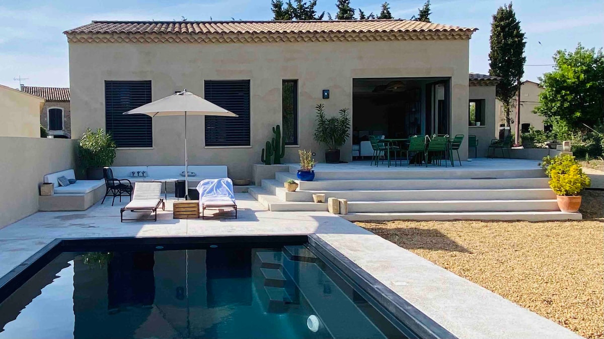 Escape the daily grind in our bright, designer villa with heated pool Ideally located between the Luberon and the Alpilles, this architect-designed house combines modern comfort, calm and natural elegance. Enjoy an interior space bathed in light. Relax in the pool. Each room is equipped with a Smart TV, air conditioning and modern equipment for optimal comfort The charm of Provence, the modernity of a designer villa, and the luxury of tranquility