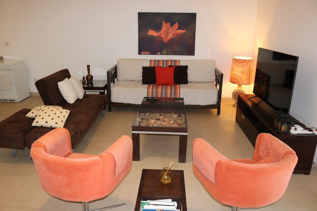 Beach apartment with incredible beach view situated in a quite area 2 minutes away from B12 beach and the Marina with easy access to the private Azure Beach. Specialized in hosting families. Whether you're looking for a family friendly environment with comfortable space we ensure a warm and welcoming atmosphere tailored to your needs.