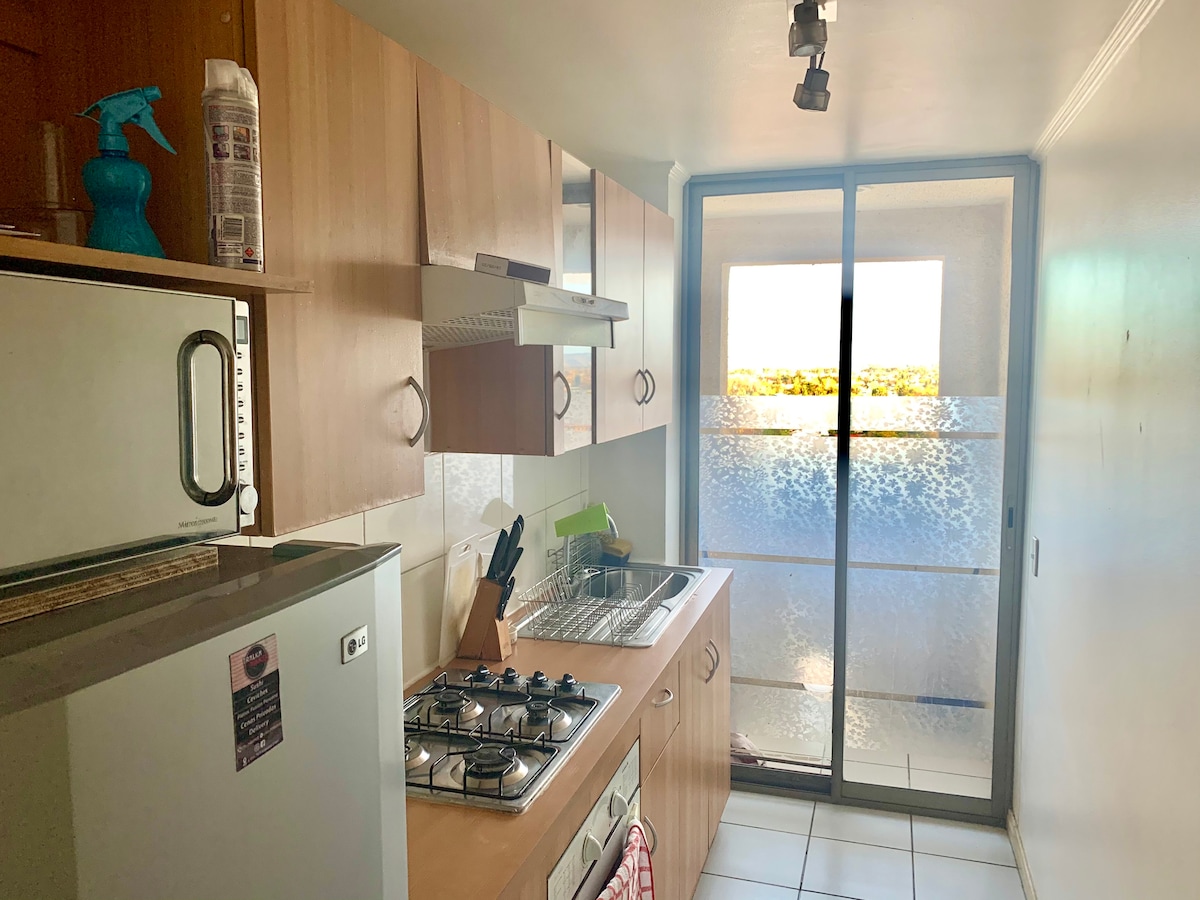 Beautiful apartment with a nice view, ideal for travel or work! Located in a safe condominium in the Las Rastras sector, 3 minutes from the Plaza Maule Mall and casino. It has: -Elevator, pool, quincho -1 parking space -1 bedroom with a double bed -Walk-in closet with 1 en-suite bathroom - Fully equipped kitchen -Cozy living/dining room -Terrace with a beautiful view
