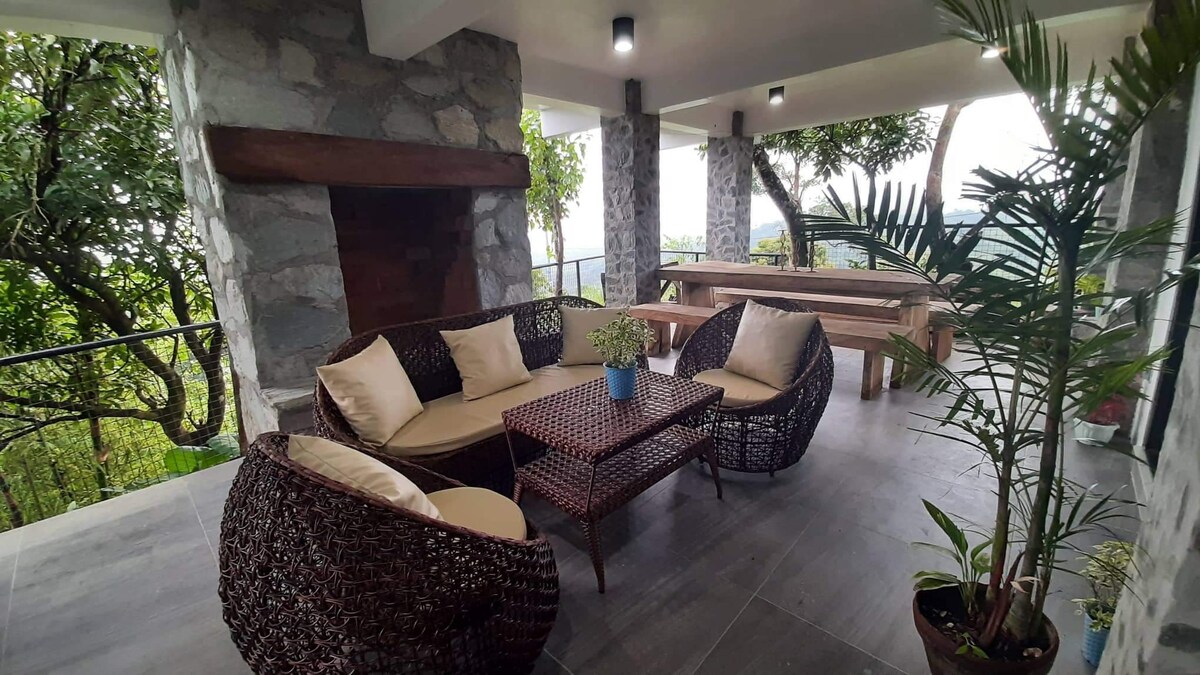 English inspired Cottage with outdoor/indoor fireplace in a area of outstanding natural beauty (ANOB) with far reaching views of batulao mountain and the sea. A few mins from twin lakes. Suitable for 10 pax 3 bedrooms 5 Queens size bed 2 bathrooms (heated water) 2 smart TV's (WiFi with Netflix access) Large viewing balcony 2nd floor Including seating areas Outdoor room with fireplace Eating area/dinning Fully equipped kitchen 2 door fridge Masterbed has aircon others have fans