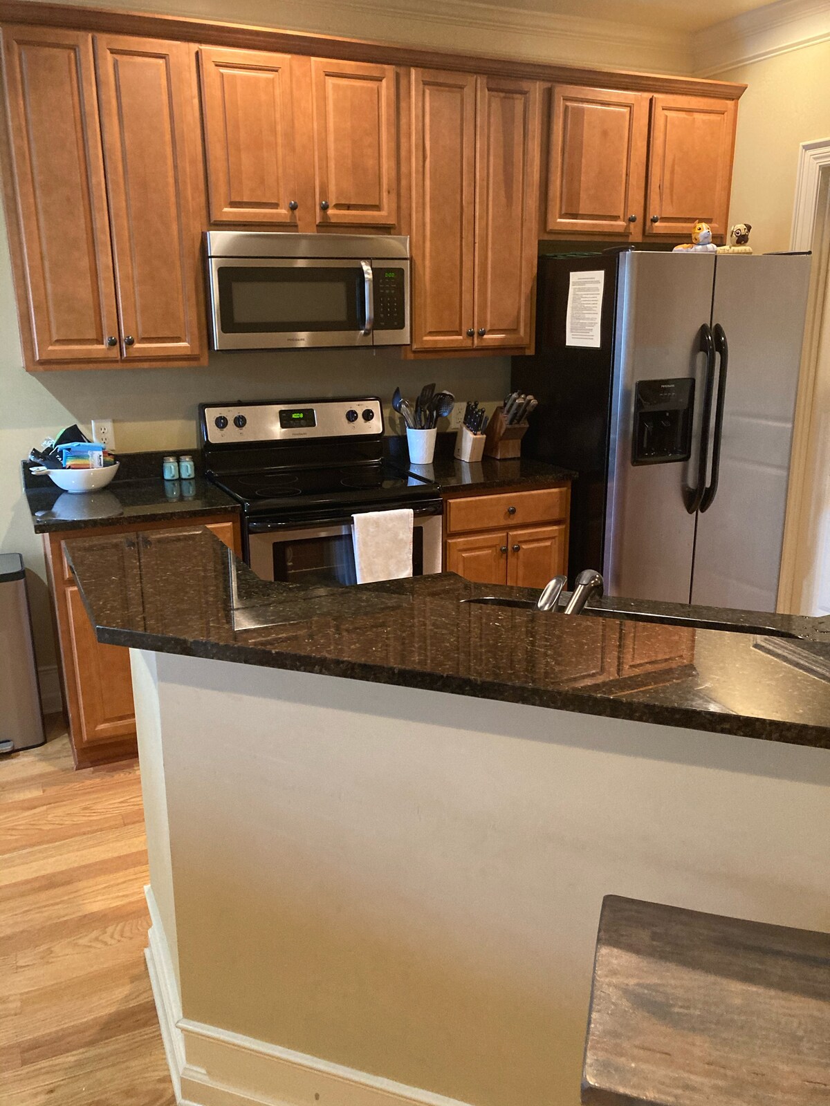 This upscale fish camp home has one downstairs bedroom and full bath with well equipped kitchen. The upstairs master has a balcony overlooking the lake which is perfect for morning coffee. The additional upstairs bathroom also has its own full bath. If cooking is not your thing, restaurants are less than 5 minutes away. Water toys included in your rental are a paddle board and a kayak. Enjoy the view and the special amenities this home offers!