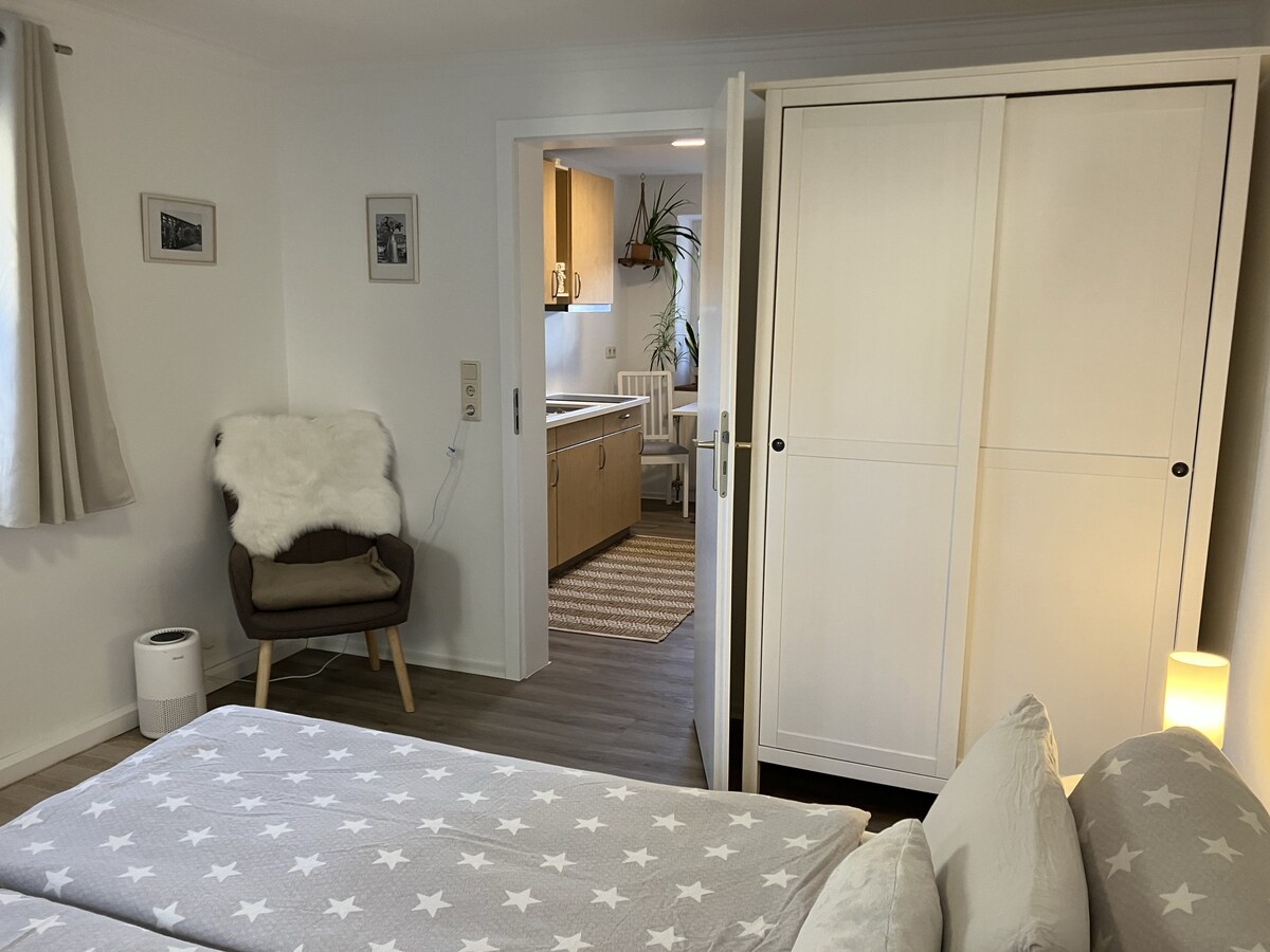 The apartment is on the lower level of a 3-family house with a separate entrance through the garden. Both the bathroom and the approx. 30 m² rooms have daylight and windows. There is an electric kettle in the apartment. There is no kitchen. There are restaurants, bakeries, a butcher, a fish shop, a supermarket and many other places in the immediate vicinity. You can get a snack everywhere. The area is very quiet, and the train station is just a 2-minute walk from the apartment.