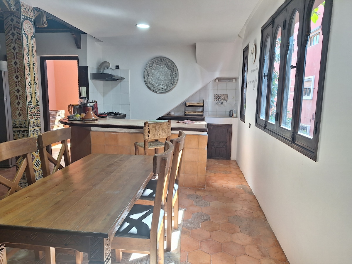 eschreibung [Fortsetzung] Unser Haus ist ein Riad mit einem schönen Innenhof und einer herrlichen Terrasse mit Grill. Die Terrasse oben bietet drei verschiedene Sitzgelegenheiten und unten innenhof zusätzlich eine traditionelle Sitzgruppe. Im Erdgeschoss befinden sich folgende Zimmer: Eine Küche , ein Schlafzimmer mit einem Doppelbett für 2 Personen , ein Wohnzimmer mit Schlafgelegenheiten für 2 Personen sowie ein Badezimmer mit Dusche und der herrliche Innenhof.