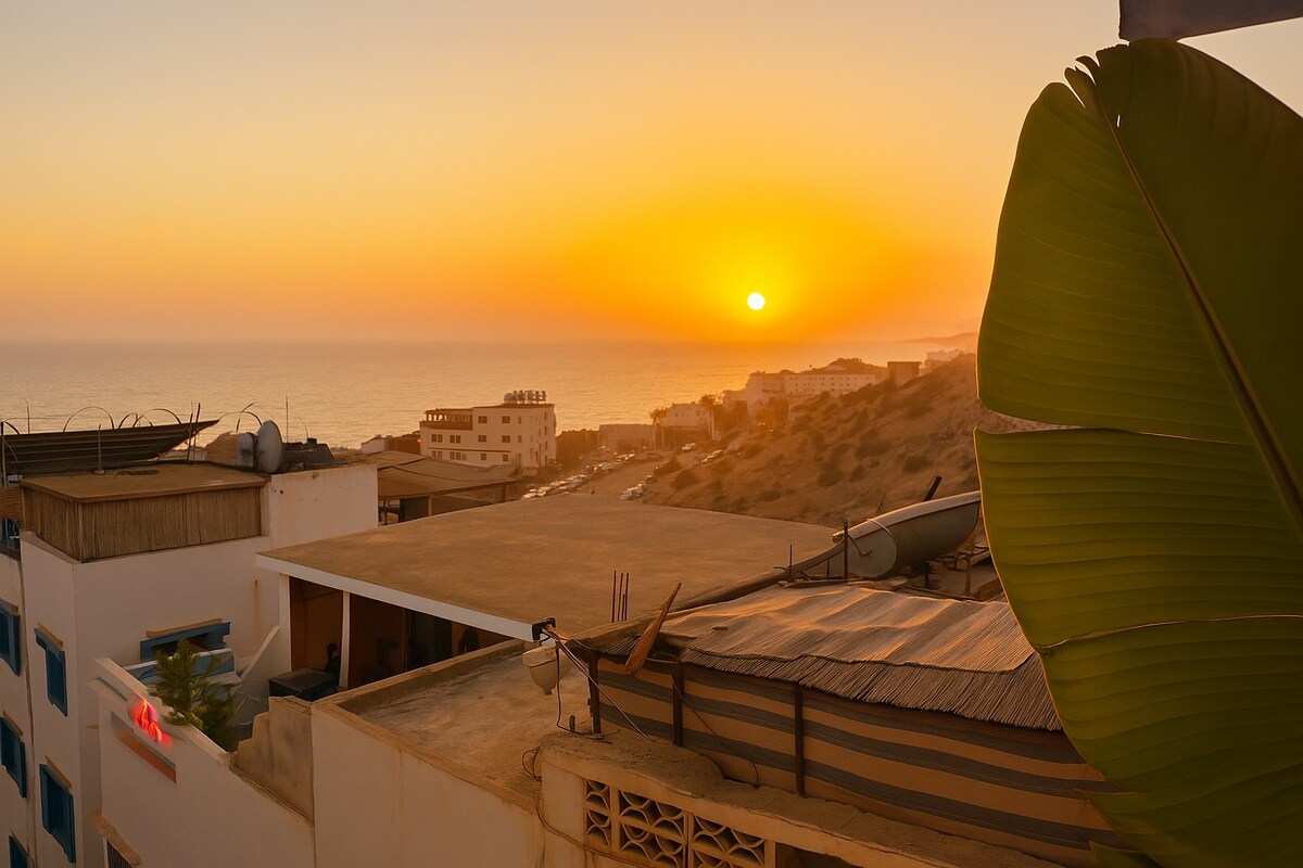 On a humble street perched atop the lovely surf town of Tamraght, you will find our house. Our rooms are light and breezy, with every detail handpicked, and lovingly put together. From our spacious rooftops, you have an expansive view of the sea, of the whole charming town, and the mountains. A full 360 panorama. Perfect for yoga, wave checks, and lounge. 5-10 min walk to shops, restos, and 15 min to the beach. We can cook up meals, and curate experiences. BREAKFAST (w/a view) INCLUDED.
