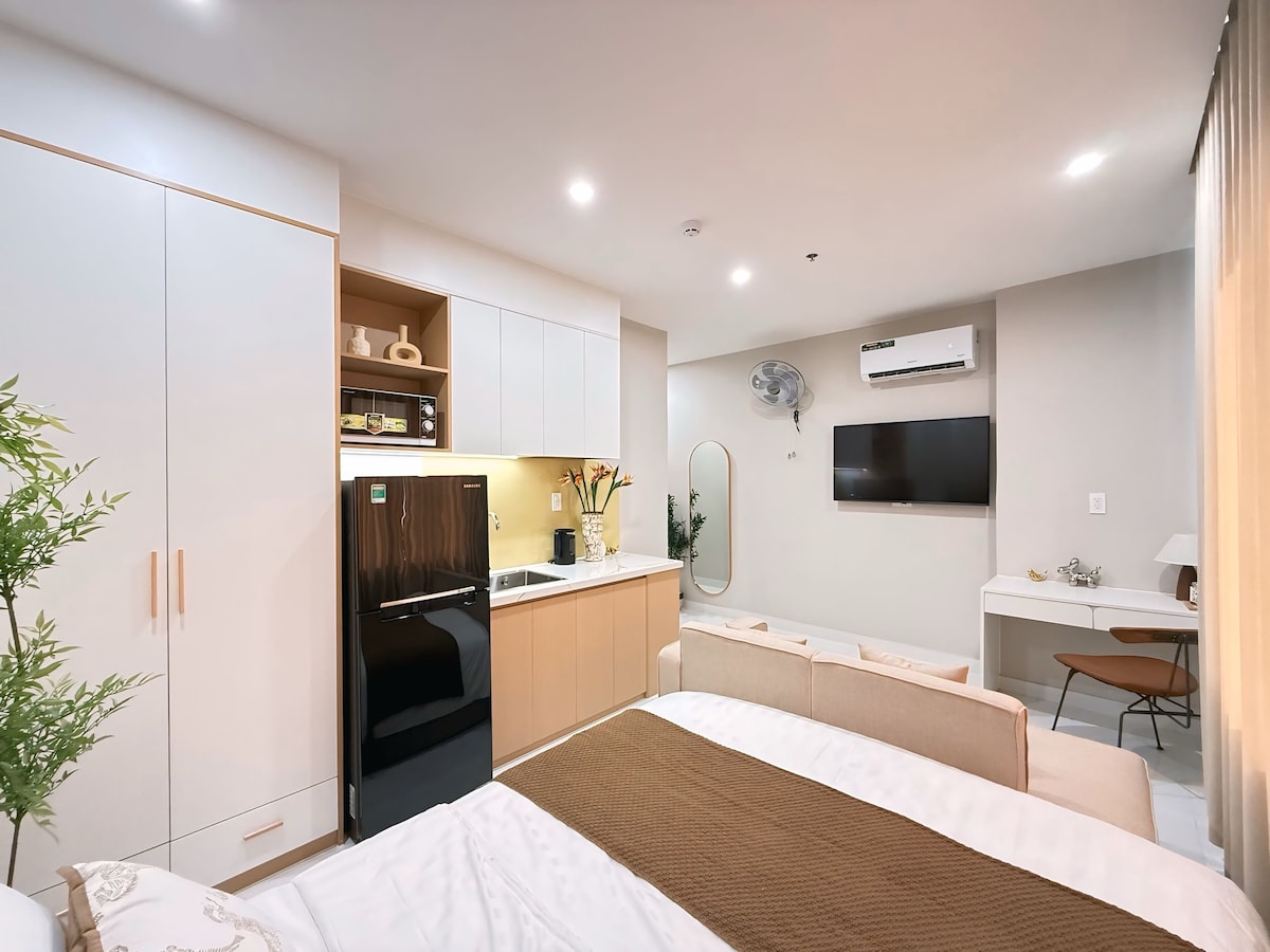 Welcome to our pristine, brand-new apartment! Located right in the vibrant heart of Phu My City, Sol Park View is quickly becoming the top choice for guests seeking a cozy, highly convenient, and refreshing place to stay. This spacious, private studio is entirely yours and is designed to maximize natural lighting, creating a bright atmosphere. You will love the coziness and the quiet natural views from the window, offering refreshing air. Everything is 100% new for you.