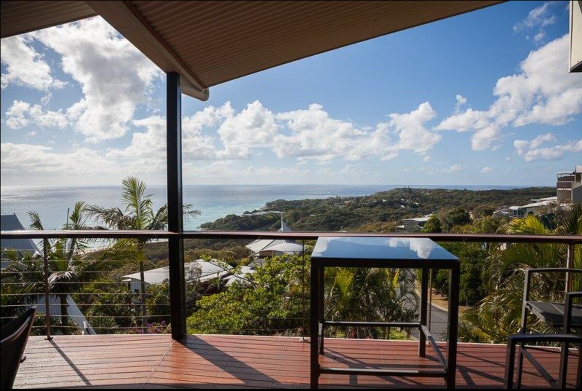Beautifully designed MAGNIFICENT BEACH MANSION with extensive north west to north east views over the Coral Sea. Open plan kitchen & dining with bi fold doors opening out onto large entertaining deck. Main bedroom with en suite and on the upper level with full kitchen and another entertaining area. This superb home has been designed to accommodate families with 2 kitchens, living space on both levels.. Enjoy the pool table, table tennis & Foxtel Platinum HD. Sorry no parties.