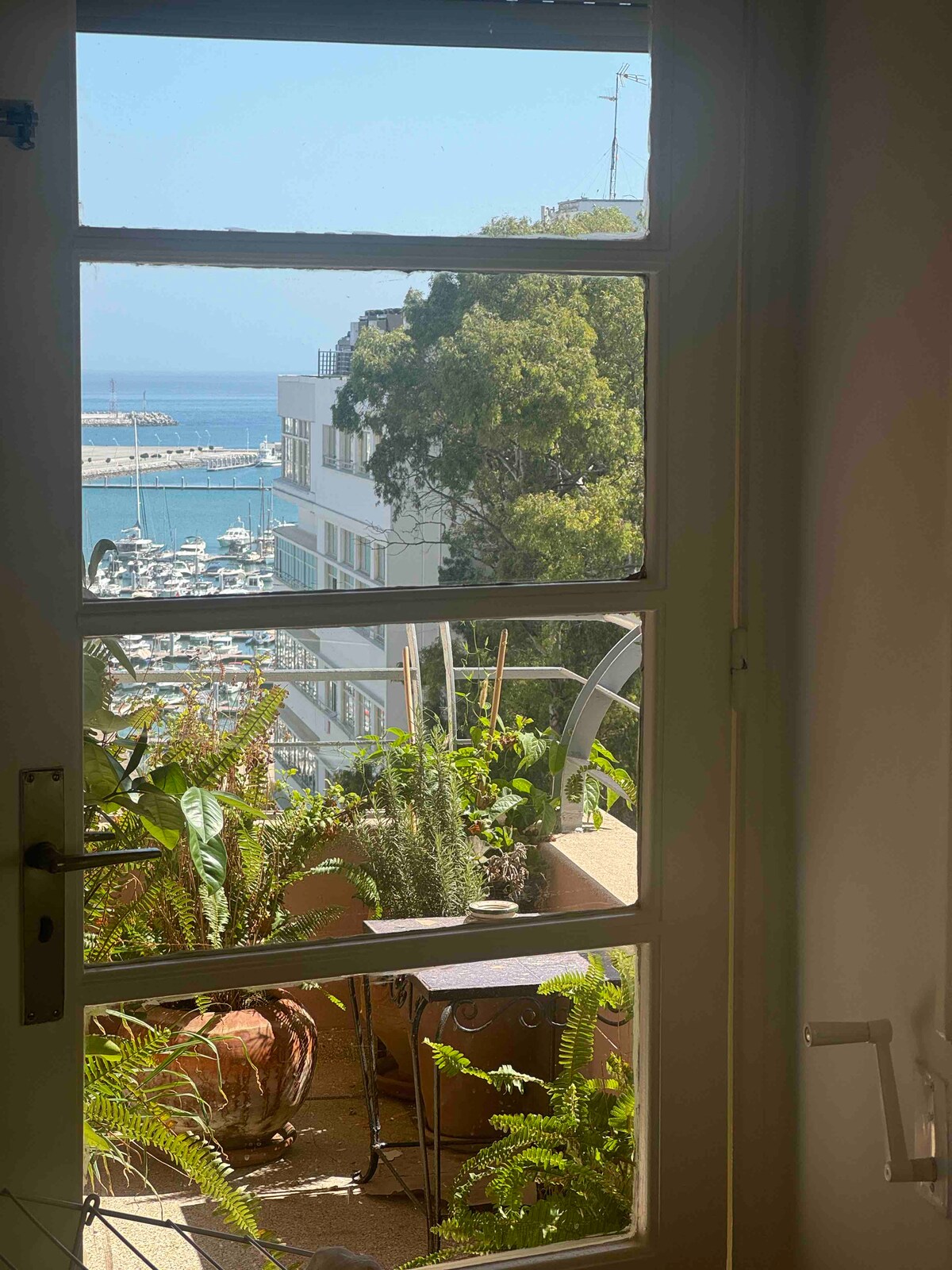 Welcome to our charming 3-bedroom apartment nestled in the vibrant heart of Tangier's hyper center. All necessary amenities are available: Air-conditioning, Smart Tv, Netflix, fiber-optic internet connection, coffee machine, towels, shower amenities, etc Located on the last floor of the building with elevator access, you are just a few stairs away to access the incredible rooftop and admire breathtaking views of Tangier, Spain, the straits of Gibraltar and the mountains of Chefchaouen.