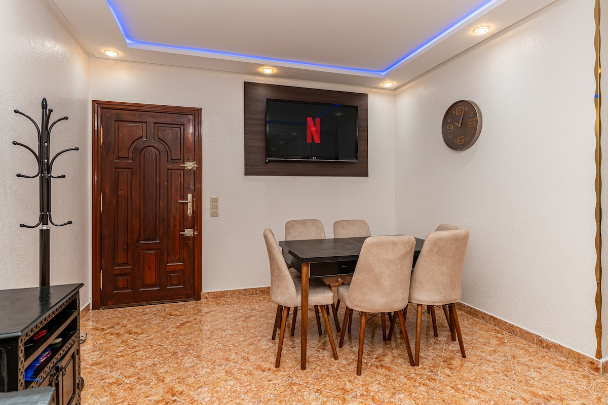 Welcome to our luxury apartment, ideally located in Tangier🌇. Our family residence offers a prime location for exploring the city. Enjoy the comfort and luxury of our accommodation with spacious living room🛋️, terrace☕, equipped kitchen🍴, and elegant bedrooms🛌. We've thought of everything to make your stay enjoyable and memorable😊. Book now for unforgettable moments! 🎉