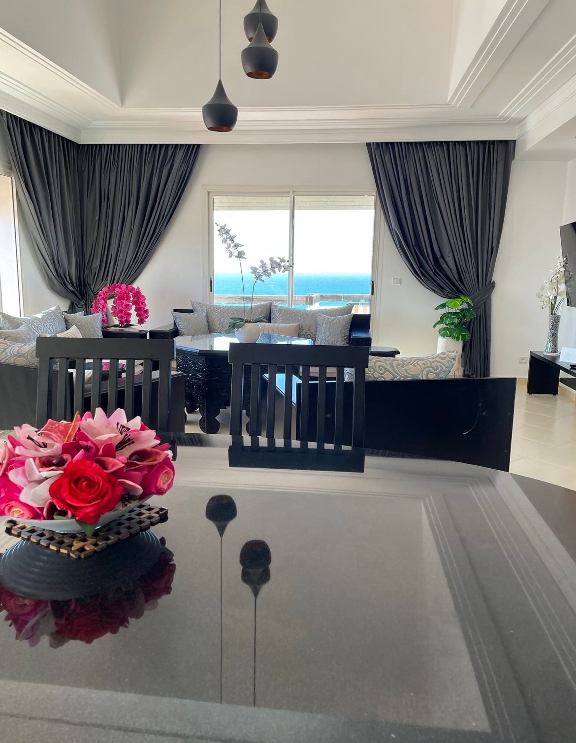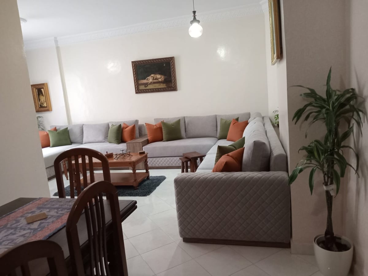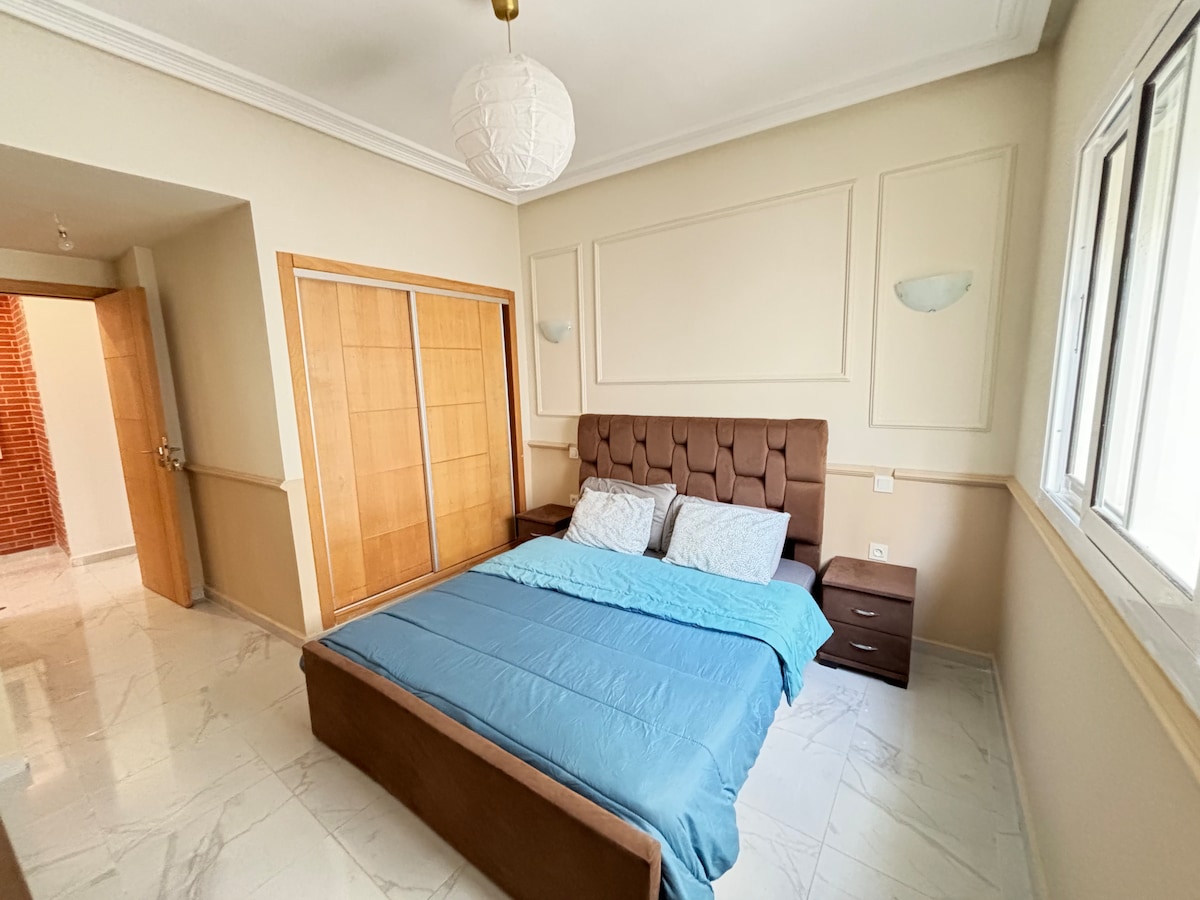This charming luxury apartment is located in the heart of Tangier’s Mesnana Golf area Enjoy fast Wi-Fi, free parking, and handcrafted Moroccan decor that adds a warm, and giving the space a soulful Moroccan touch,Just 5 minutes from the beach, forest, and surrounded by cafés, luxury restaurants, and supermarkets. Located on a main road with easy transport access This apartment is ideal for couples, families, or anyone looking to explore Tangier while enjoying a peaceful and stylish home base.