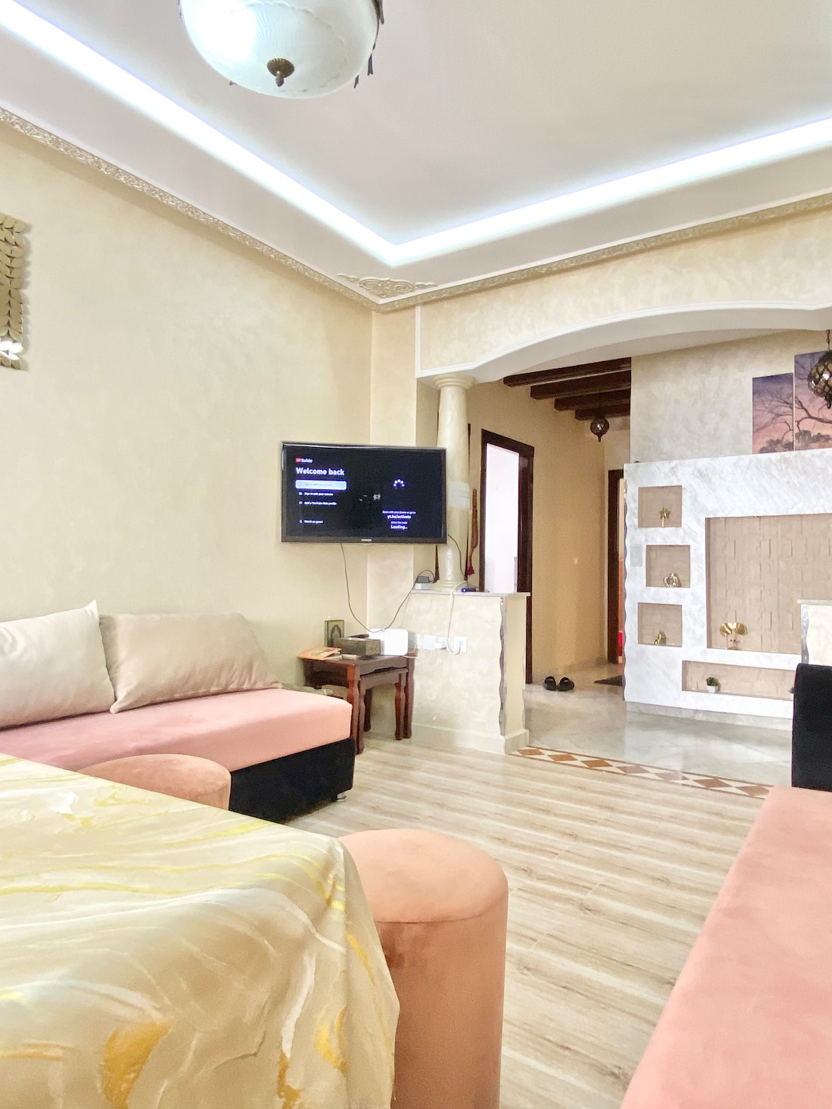 #1 location in TANGIER! Directly opposite the beach with a large balcony with partial sea view. Best location in Tangier. Satellite TV-Fiber WiFi, Netflix, Iptv. Everything is within walking distance of the marina, old town, McDonald's, pubs, cafes... Travelers with a car will have a free parking space in the garage of the residence with direct access to the apartment. 24-hour security. Be my guest. * Before you book please read my description thoroughly THANK YOU🙏🙏