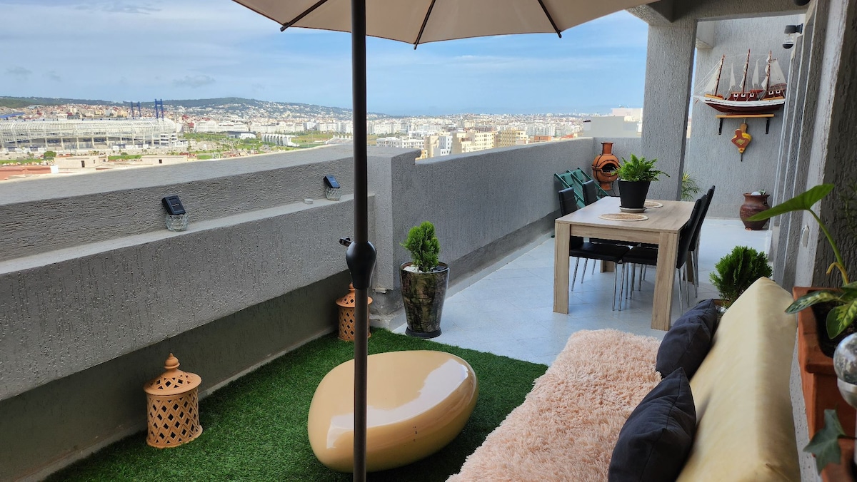 ✨The Panoramic apartment in the Blue Gardens is characterized by its modern and elegant design, each element being carefully designed to guarantee you an unparalleled experience ✨Its central location ✅ Apartment with panoramic sea views and close to: ✅ 1 min from Martil Beach 🏖 and its famous corniche ✅ 5 min to Cabo Negro Beach 🏝 ✅ 4 min from Ikea and KFC 🍗 ✅ 6 min from Marjane and McDonald's 🍟 ✅ 1 min from restaurants, cafes, shops