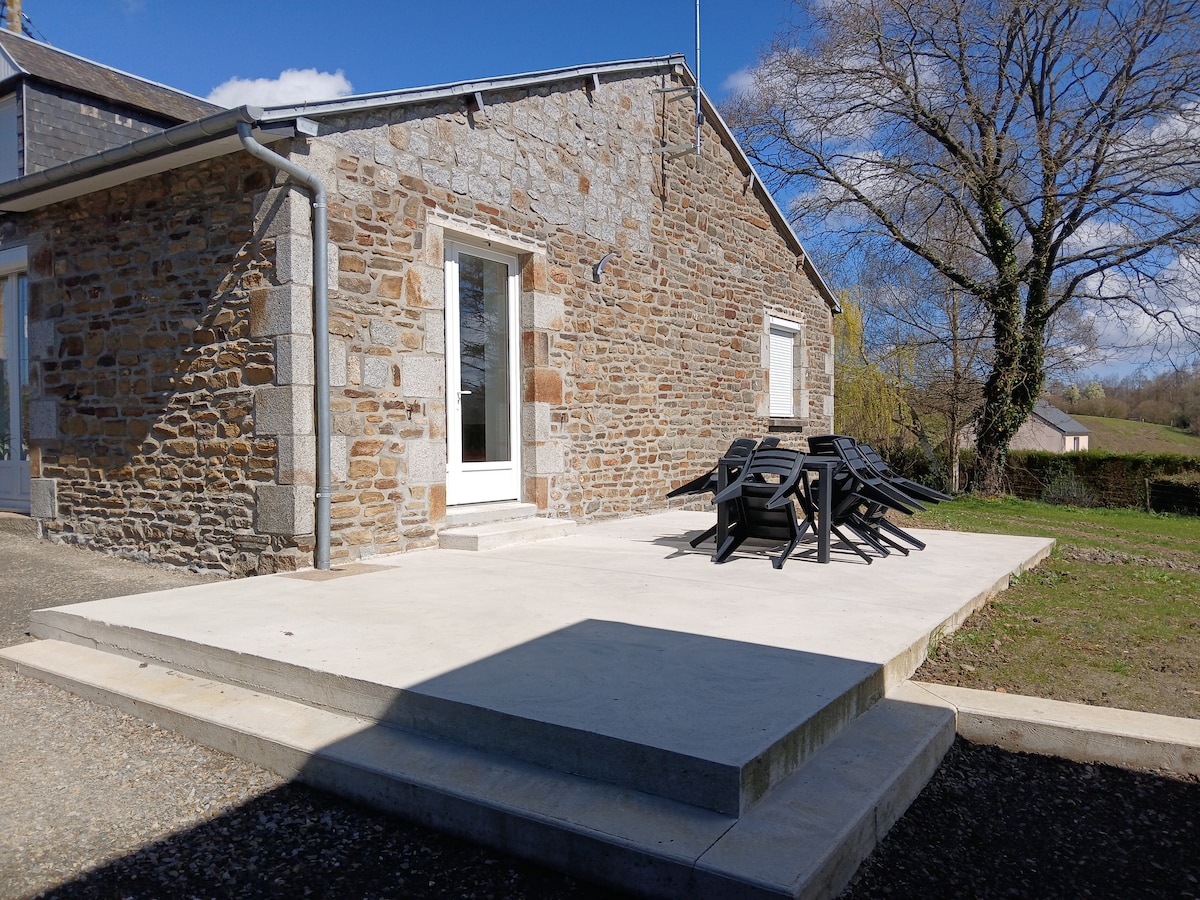 Charmante location de vacances en campagne, située entre Granville et Saint-Malo, à 7 km du Mont-Saint-Michel. Notre logement comprend une pièce de vie avec salon, télévision et cuisine toute équipée. Une salle de bain avec douche à l'italienne, WC, lavabo, sèche-serviettes. À l'étage, une chambre avec un grand lit 160 x 200 ainsi qu'un deuxième couchage type BZ de 140x190. Possibilité de lit parapluie. Vous trouverez une terrasse tout autour de la maison avec salon et table de jardin.