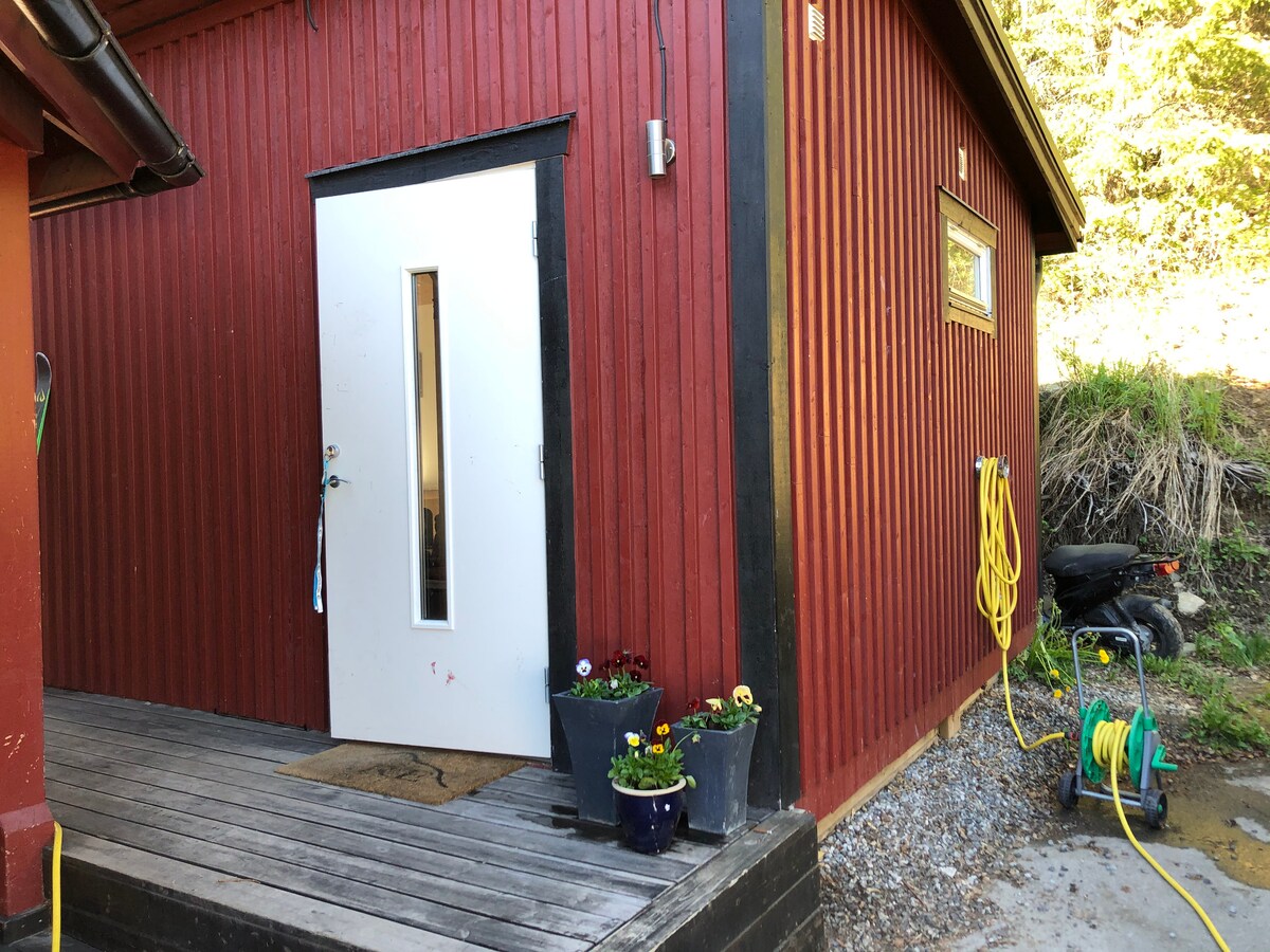 House (25 sqm). Private entrance, toilet, shower cabin & washing machine. The price includes bed linen, towels & final cleaning. One large room with a bed (140 cm), sofa (which can be used as a bed), desk. NO KITCHEN but there is a small refrigerator, micro & water boiler. As a hotel room - larger. Good storage and drying facilities. WIFI, TV with apple TV. Own part of patio. Not shoveled in winter. Parking space - by house. "Trixy" driveway up, due to road conditions.