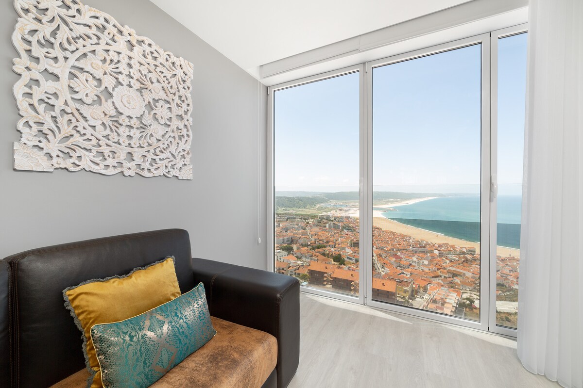 Apartamento localizado na Nazaré, com a melhor vista da villa! Consegue ver todo o arial da praia da Nazaré, o comercio, a frente do mar, as casas típicas, a praia dos salgados e o Porto de Abrigo. O imóvel tem um Design Moderno e Luxuoso. Trata-se do 14 º andar. Está a 2 minutos do centro da villa de carro e 15 minutos a pé. Adults only. Capacidade única e exclusivamente para 1 ou 2 adultos. Venha passar uma férias ou escapadinha neste espaço maravilhoso! Não se vai arrepende! Até Breve!