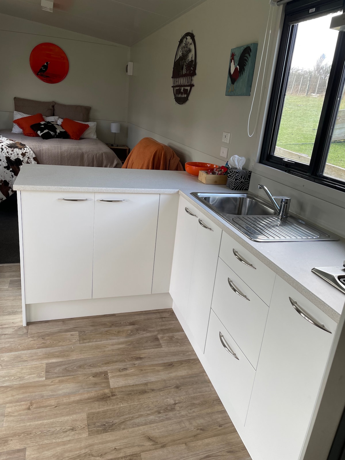 Fully self-contained two bedroom tiny home amongst some of the properties Alpacas. Continental breakfast included: milk, bread, eggs and choice of cereals and spreads. Located in the Manawatu just 10 minutes from Palmerston North and 10 mins from Feilding. Convenient to Manfield Chris Amon raceway or Robertson Prestige Speedway. Trailers, car transporters and larger vehicles can be accomodated on request.