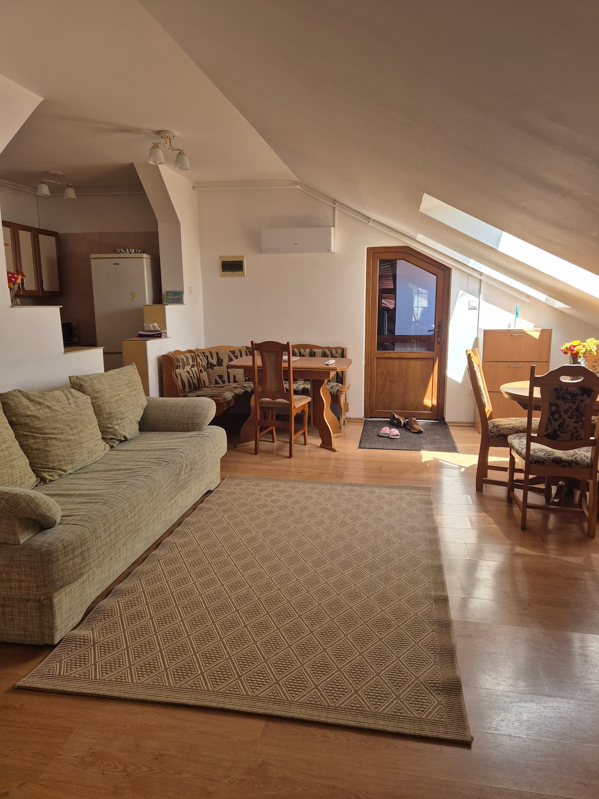Modern ground floor apartment offering 2 bedrooms with large beds, large living room, kitchen with dining area, private bathroom. A perfect place in the center of Târgu Mureș to visit nearby attractions on foot. The apartment is equipped with air conditioning and mosquito net on the windows.