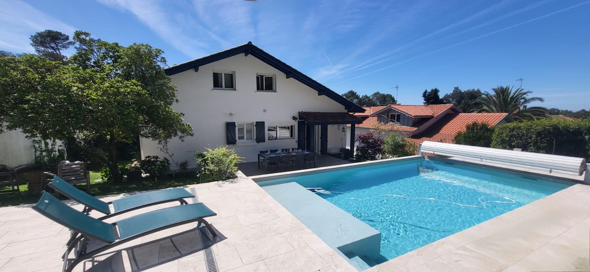 This peaceful accommodation offers a relaxing stay for the whole family, up to 6 people, the pool awaits you to spend good times. Completely renovated inside, easy access, 2 private enclosed parking lots, close to all amenities, this villa is located in the city center in a quiet subdivision 10 minutes from the beach, ideally located between Biarritz and Capbreton.