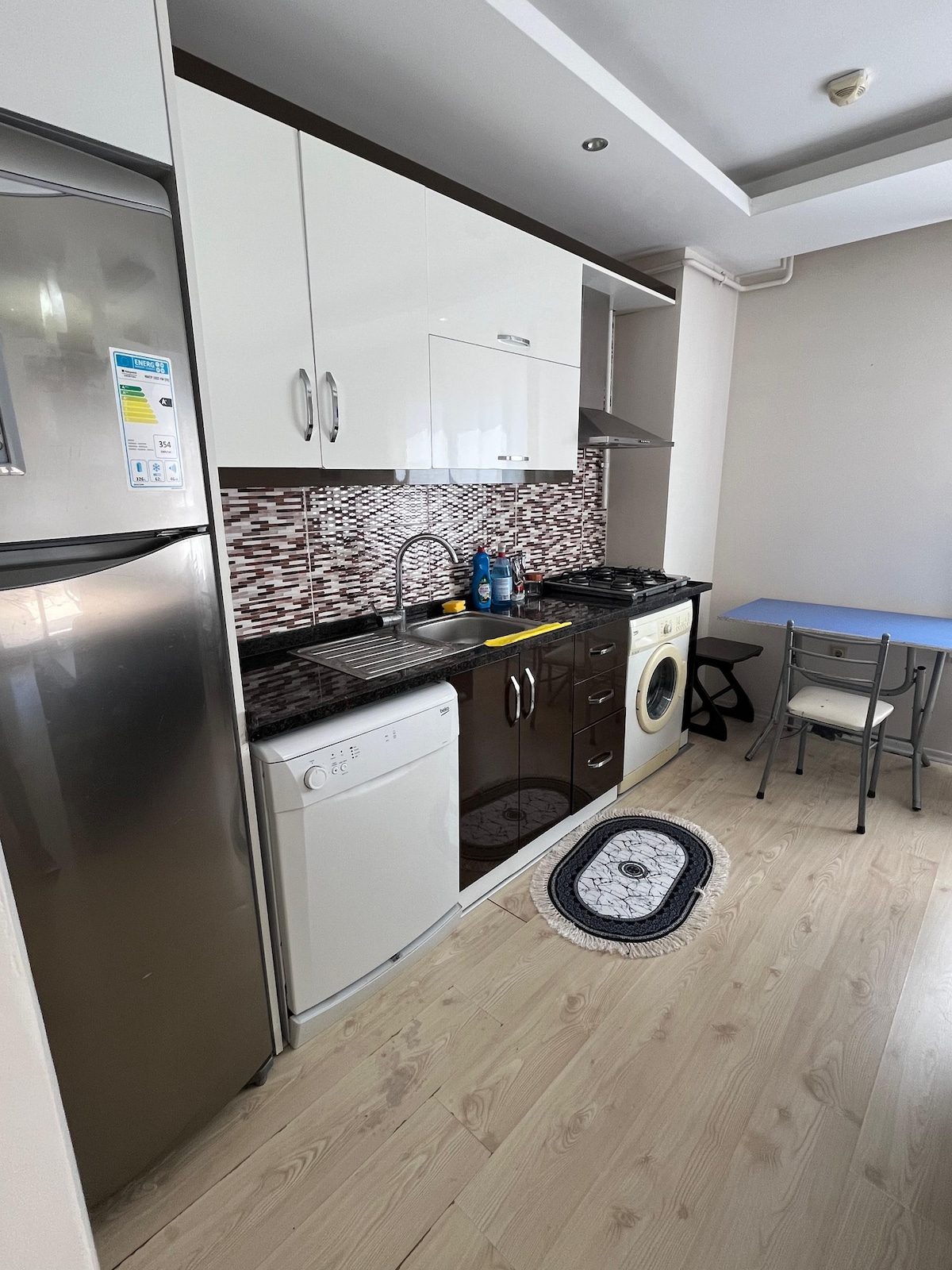 Our modern 1+1 apartment, located in a central location, has been carefully prepared for a comfortable and peaceful stay. Our clean, spacious and fully equipped apartment has a comfortable bed, sitting area, kitchen and bathroom. Ideal for business trips or vacations. It provides easy access to the beach, shopping malls, restaurants and public transportation. Secure building, fast internet and 24/7 support are available.