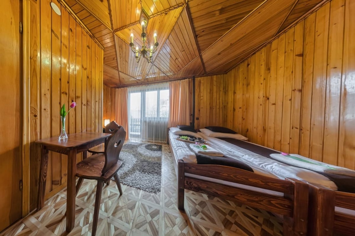 Pokój 3os znajduje się w klimatycznym góralskim obiekcie. Wykończenie w boazerii drewnianej dodaje klimat dawnych lat....