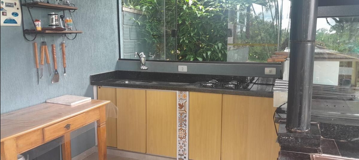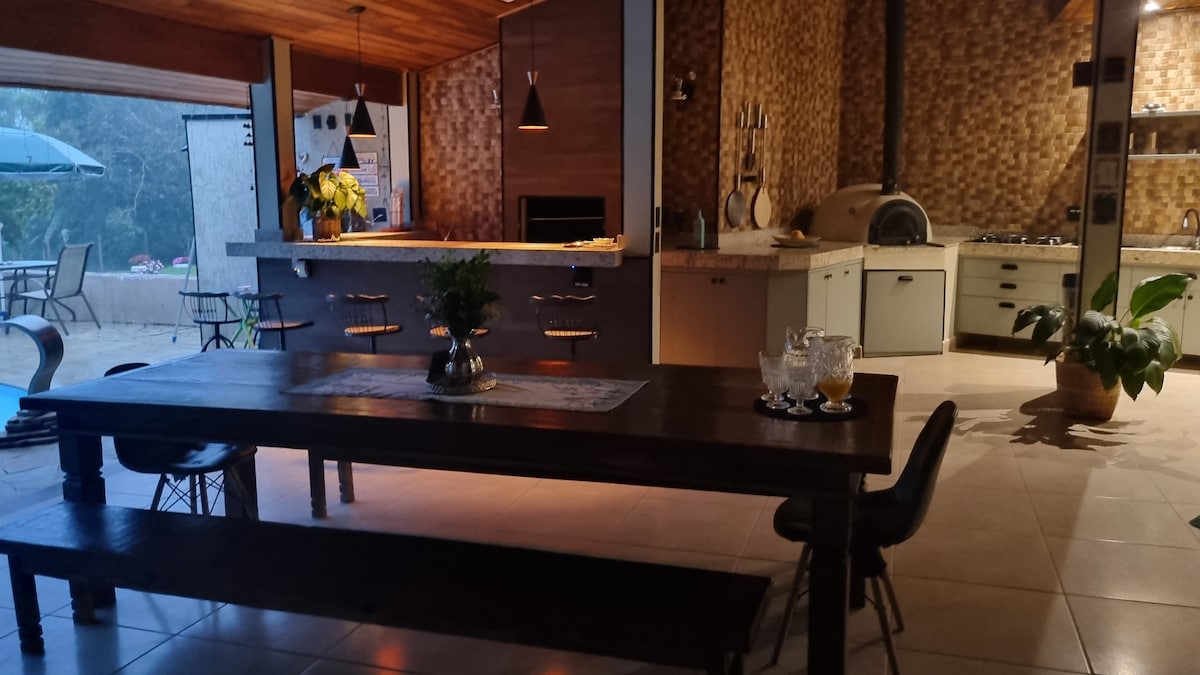 Beautiful house with swimming pool, barbecue, gourmet kitchen and accommodation, this is the ideal place. We are located in the countryside of Caçapava SP with a green area for you, your family, friends and your Pet. The space has 400 m² of area with a beautiful house and 100 m² balcony. We have an electric fence installed around the perimeter of the site to ensure safety. Whether you are looking for calm or even celebrations, fun, birthdays, here you will have a wonderful experience with your family.