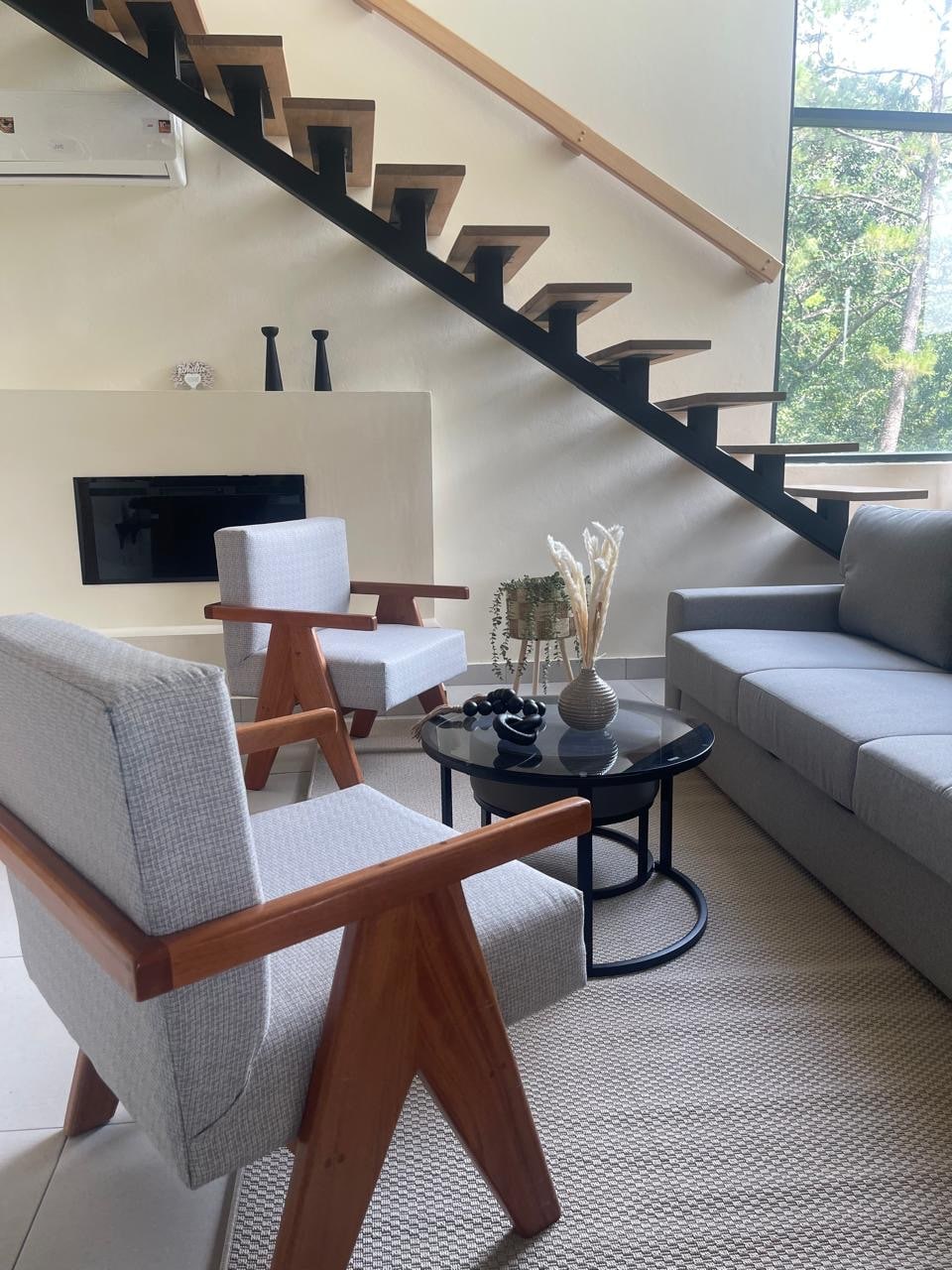 Get back in touch with nature surrounded by the lush tropical forest of Jarabacoa. This modern mountain home features soaring ceilings, natural materials throughout, contrasting textures, and access to a shared outdoor pool. The property is located a few minutes from the town of Jarabacoa and tourist attractions such as rafting, cycling trails, cliff diving, paragliding, ziplining, and other excursions. The vacation complex is conveniently located across from the most popular steakhouse in the area, and has a community pool, playground, and tennis and basketball courts. Rental of the home is for the exclusive use of guests. In case of emergency or any unforeseen issues guests will be assisted by the property manager. If requested and available, housekeeping services can be provided including meal preparation (breakfast, lunch, dinner) for an additional fee. The property is located on a holiday complex located in the area of Buena Vista, Jarabacoa. Para contacto por whattsap +1 202-476-9402. La locación del complejo vacacional es estratégica y con buen acceso, incluso hay lineas de transporte público que cruzan justo al frente de la entrada del complejo. La casa cuenta con una marquesina con capacidad para cuatro (4) vehículos. También hay un área de parqueo para visitantes con capacidad para diez (10) vehículos, a unos de 50 metros de la casa. The home has a generator in case of electrical outages.