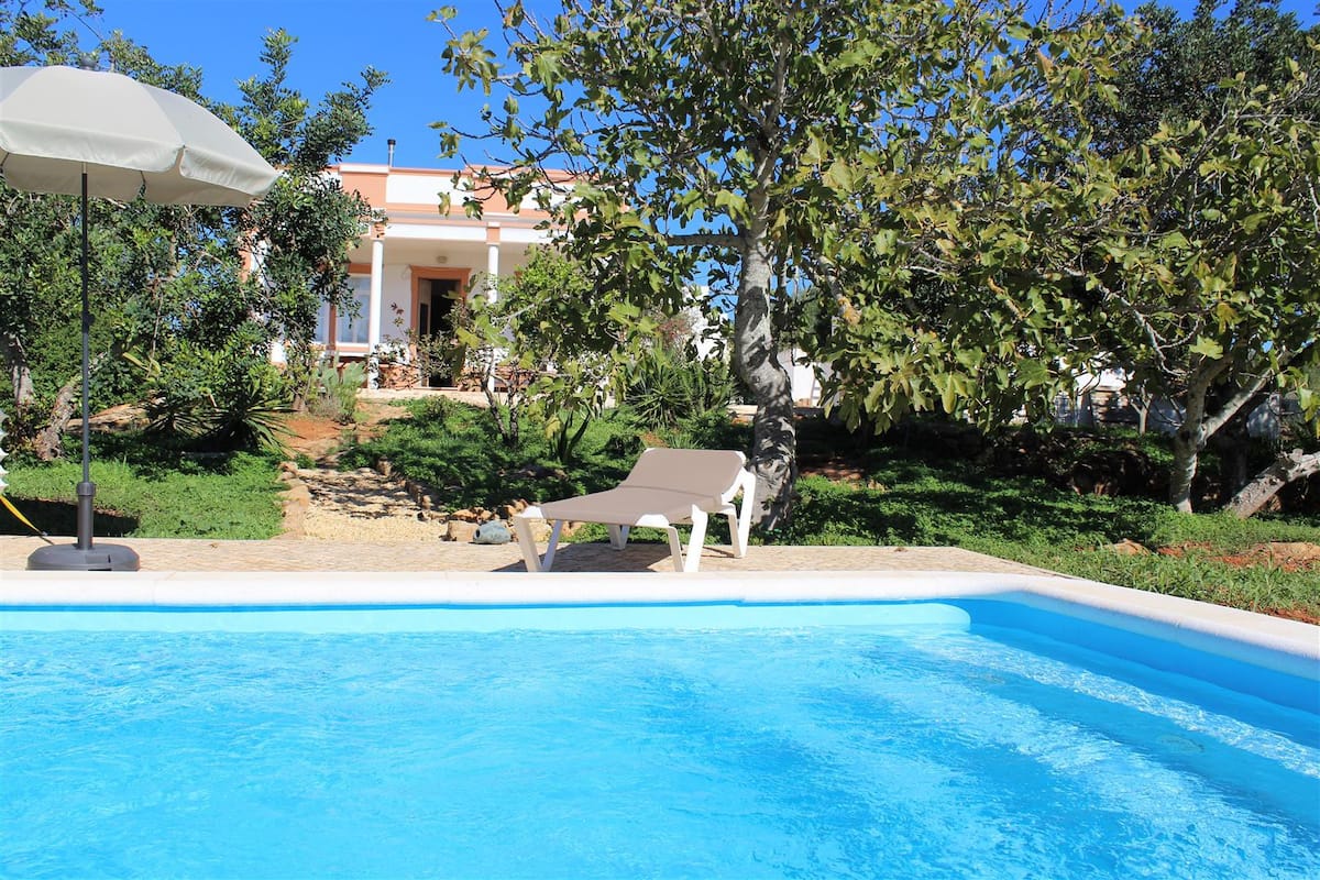 A perfect place to unwind, Quiet Location, Large Garden, Beautiful Ocean View, HEATED Pool (heated entire year) A new luxury villa in own private gardens (10000 square meter) with own 33´(10 meter) private pool - a perfect place to unwind. Set in the hills above the picturesque old fishing town of Tavira with views of both the sea and panoramic hill views. The Property is accessed from its own grand private driveway The House has its own Solar-System and is CO2 neutral Airconditioned