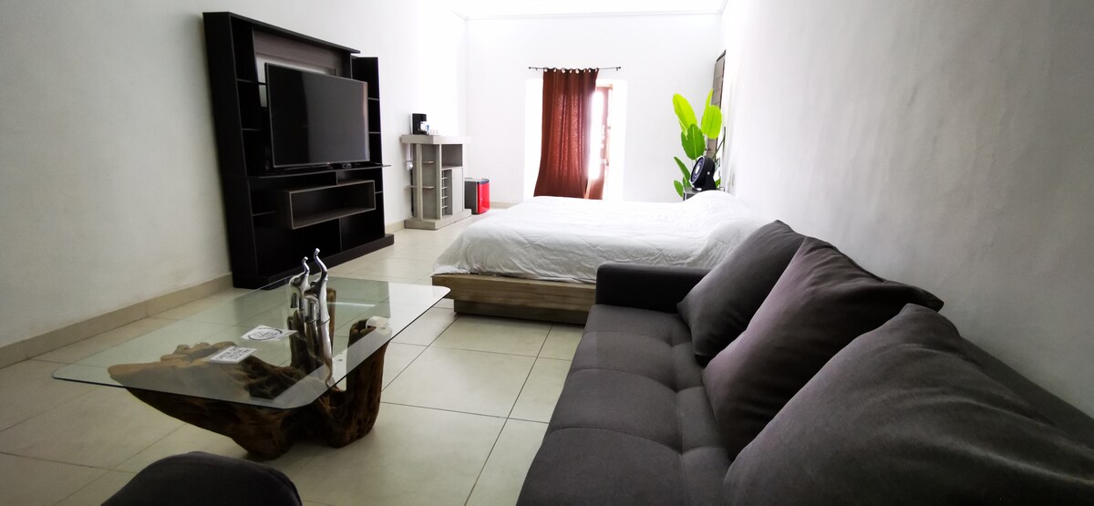 Suite with separate access with a king size bed. We have wifi internet and a 55" HD smart TV with Netflix, PrimeVideo, YouTube, etc. which you can enjoy from the comfort of your bed. Located 12 minutes from the main square on foot and less than 5 minutes by car. It is located 50 meters from the Cuernavaca-Taxco highway and the main cobbled street that goes to the zocalo, so it is very easy to get to our location.