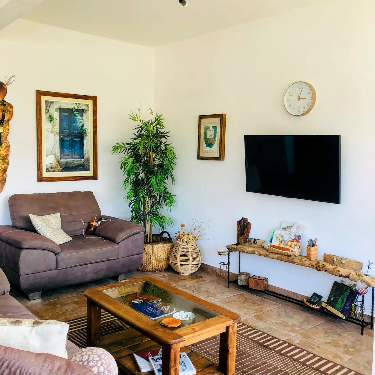 Room with rustic furniture, cozy, with good natural lighting, street-level, with exclusive entrance, 3 minutes from the church of Santa Prisca, and you don't have to walk to take public transport if you need it, since you can take it from the entrance of the room.