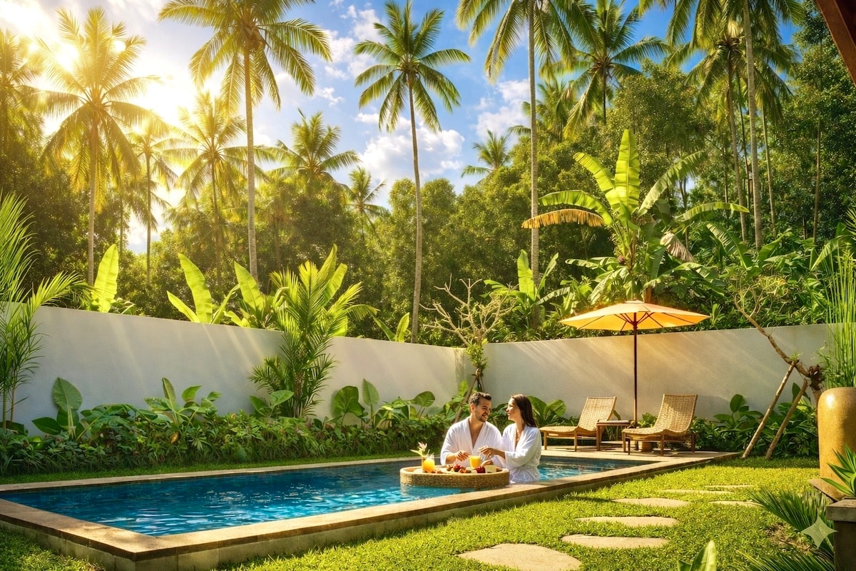 Hidden between rice fields and tropical jungle, Oniria is a romantic luxury villa designed for couples seeking beauty, connection and calm. Enjoy a private heated infinity pool overlooking the valley, a sky bathtub under the stars, and a private home cinema that turns every night into a movie scene. Every detail blends nature, design and emotion, creating one of Bali’s most unique stays for honeymooners and dreamers. This is where time slows down, and connection begins 🌿✨