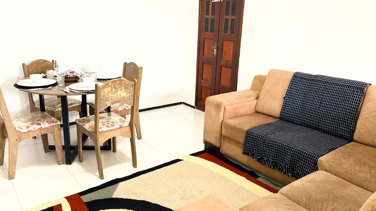 The property has 2 large bedrooms, one of which is an en-suite with air conditioning, a social bathroom, a TV room, a kitchen, a large gourmet area with a barbecue grill, a shower and a toilet, and 2 parking spaces. Residential neighborhood, very quiet and easy to access. Great location. It can accommodate up to 6 people, with two sleeping in the living room. Personal items such as bed linens, towels, among others, must be taken.