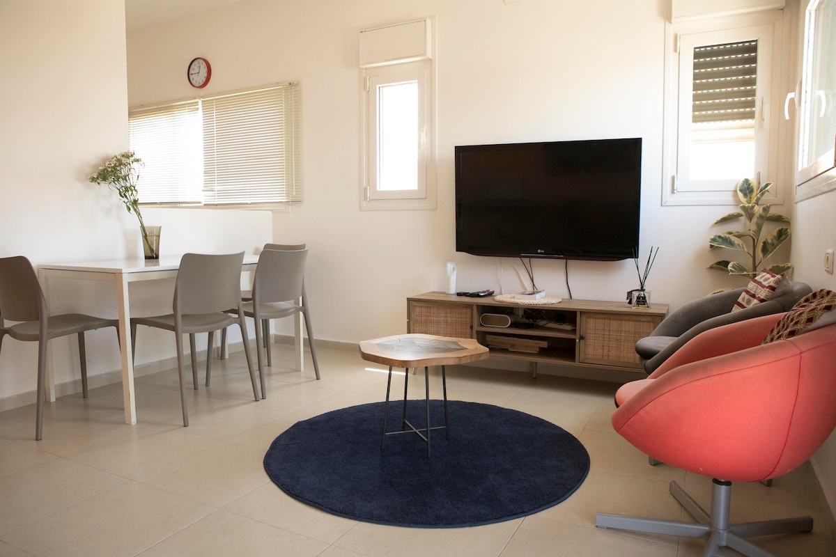 ⸻ Stylish garden suite with a fresh, modern design in one of Tel Aviv’s safest and most desirable areas. Enjoy ultra-fast fiber Wi-Fi, powerful new AC, fully equipped kitchen with Nespresso, new bathroom, and all-new furniture. Washing machine and dryer in the yard. Step out to a private garden with seating. Free street parking is usually available. A shared shelter is just 5 meters away. The perfect calm and relaxing stay in Tel Aviv.