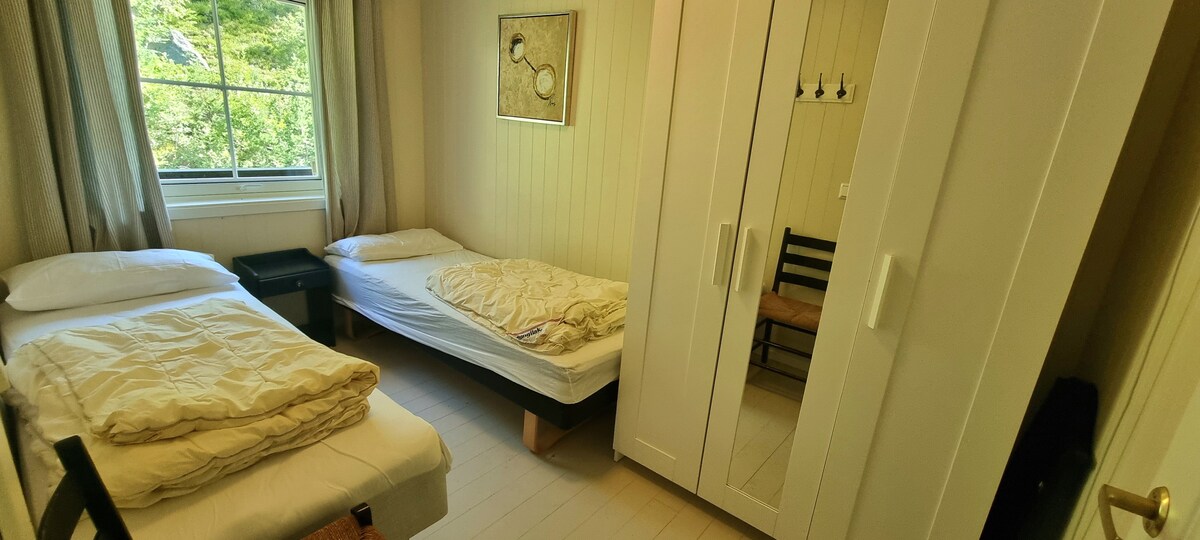 Enjoy the sound of nature when staying at this unique place. View of Bandak and the mountains Maybe the moose will come over? Enjoy the fire pit on the porch while the sun falls. Here you can find peace and quiet. Breakfast is included in the price, and guests make it themselves in the shared kitchen whenever it suits the guest. 🍳☕️